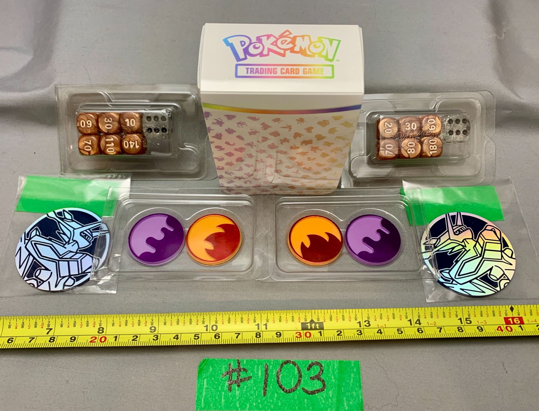 Lot 103 Pokemon Mixed Lot of Goodies / Dice, Coins, Deck Box!