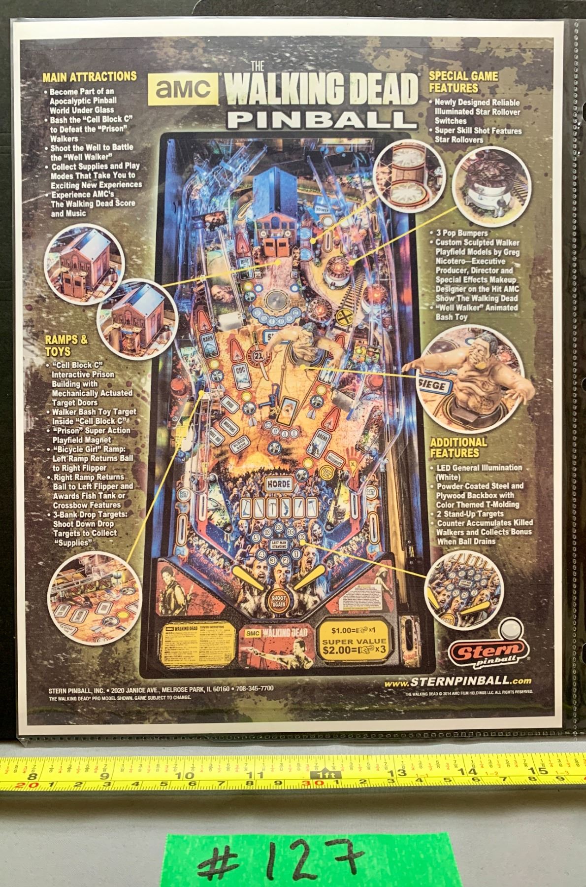 Lot 127 STERN Pinball "The Walking Dead" Original 8" x 11" 2-Sided Promo Sheet!