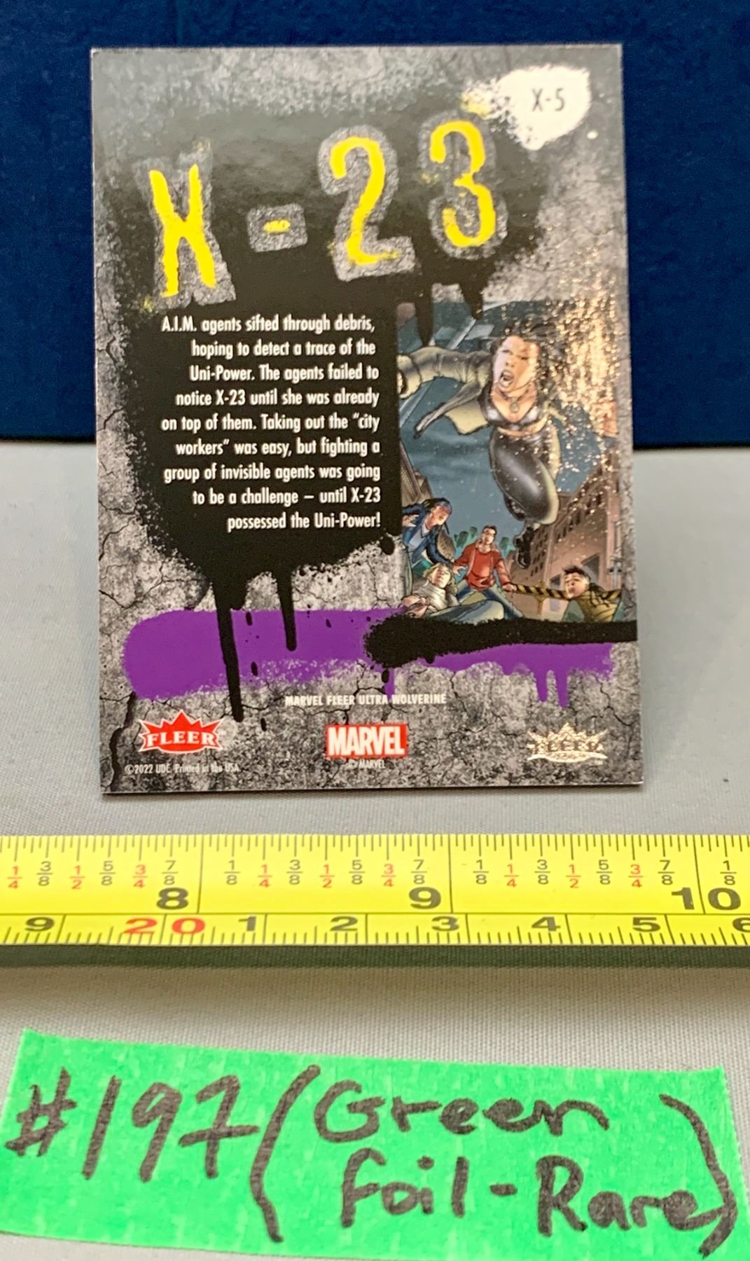 Lot 197 Marvel Fleer Ultra Wolverine 2022 Rare Thick X-23 Green Foil # X-5 Card