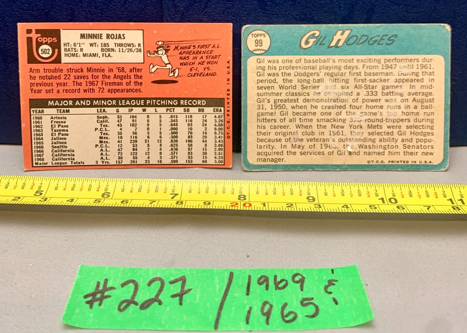 Lot 227 MLB Baseball Card - 1969 & 1965 Vintage Rojas #502 & Hodges #99