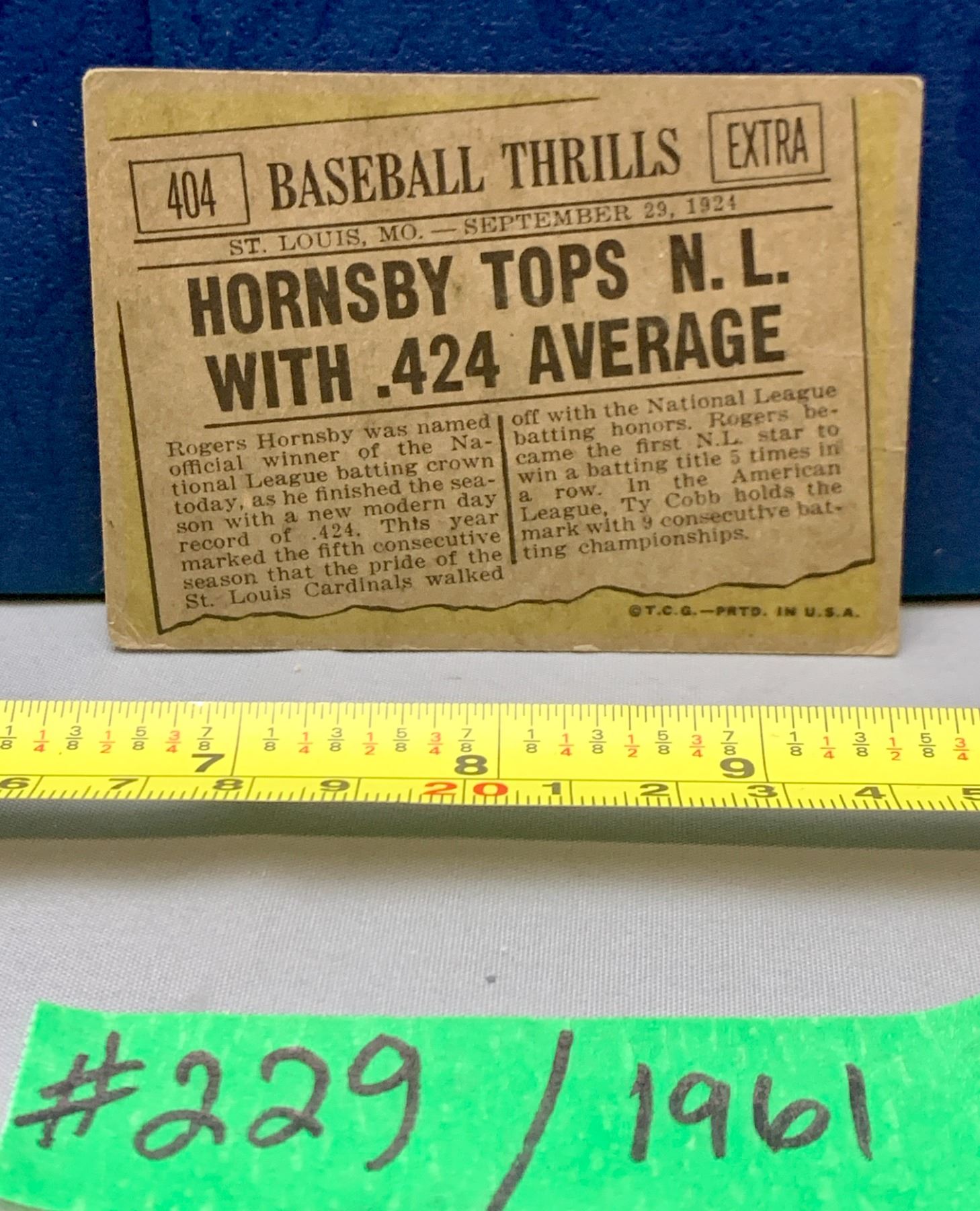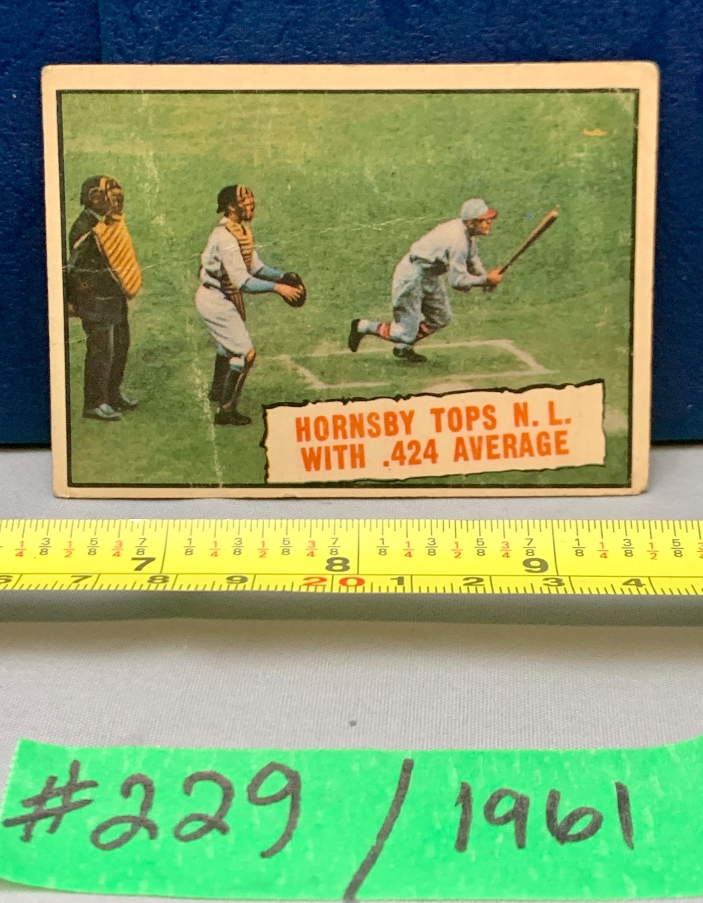 Lot 229 MLB Baseball Card - 1961 Vintage Hornsby N.L. .424 Batting Average! Rare Card!