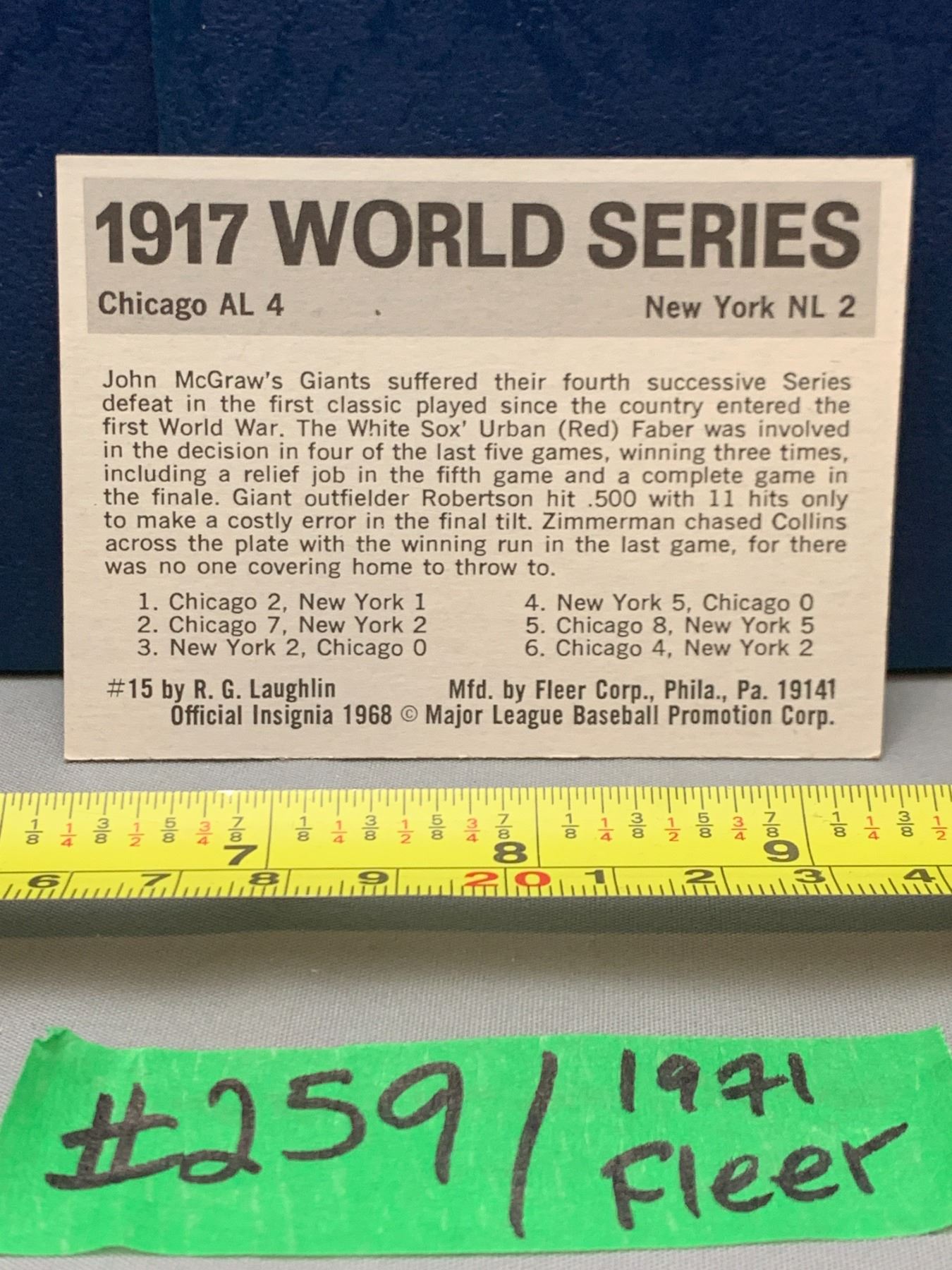Lot 259 MLB Baseball Card - 1971 Vintage Rare World Series Fleer Cards All Mint!