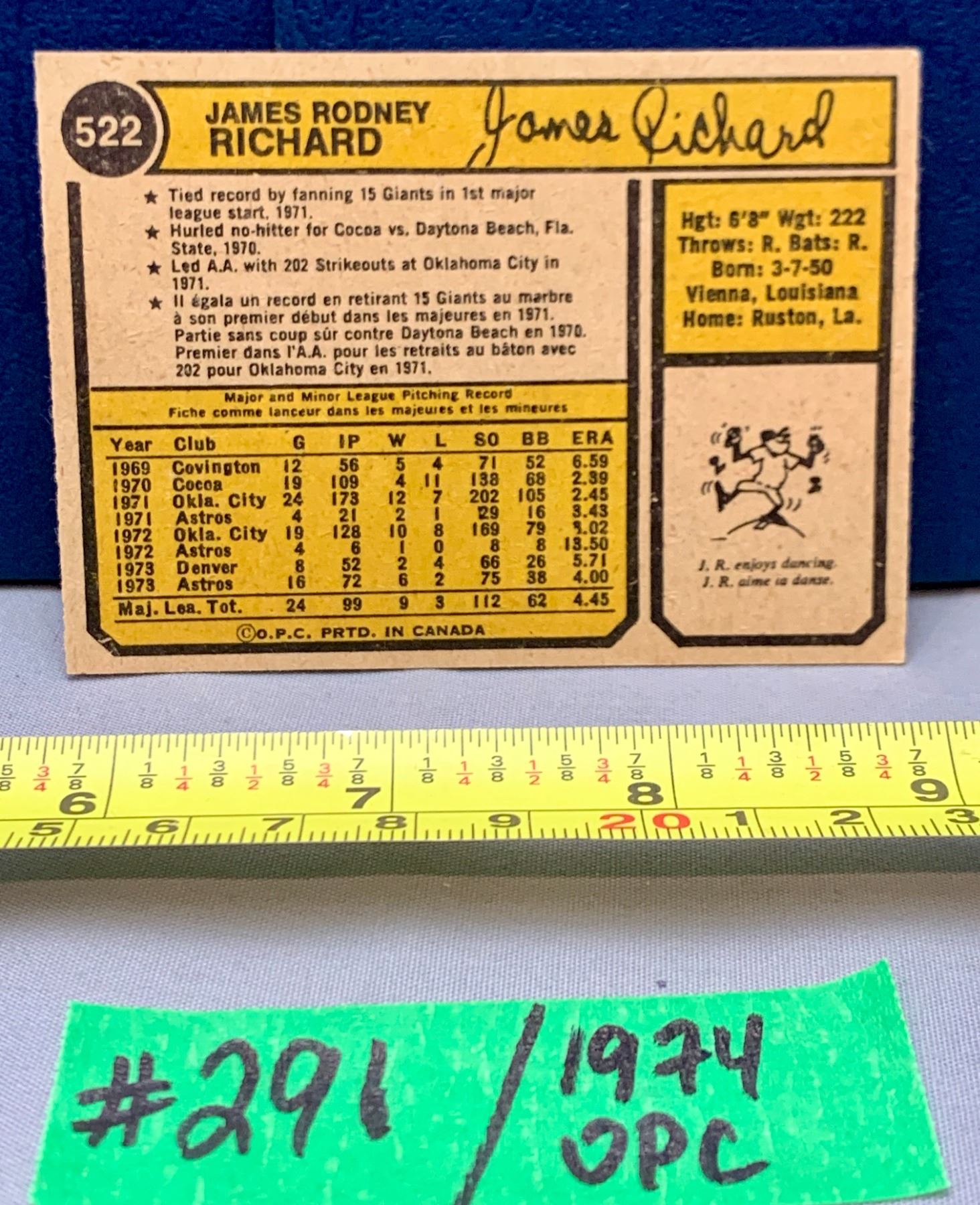MLB Baseball Card - 1974 OPC Vintage J. R. Richard #522