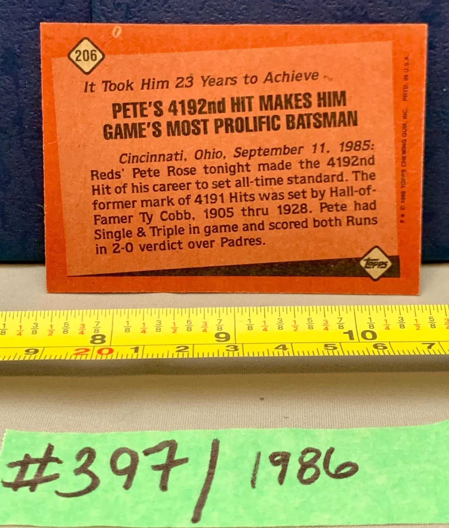 Lot 397 MLB Baseball Card - 1986 Vintage Record Breaker Pete Rose