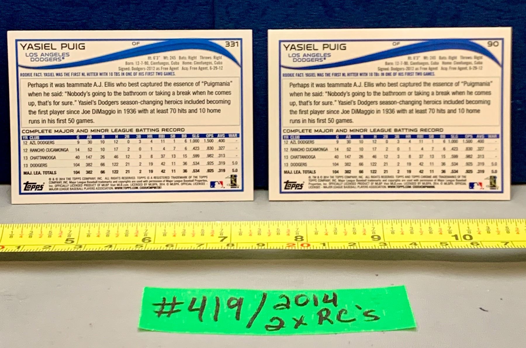 MLB Baseball Card - 2 x 2013 Yasiel Puig Rookie Cards (1 is Topps Chrome)