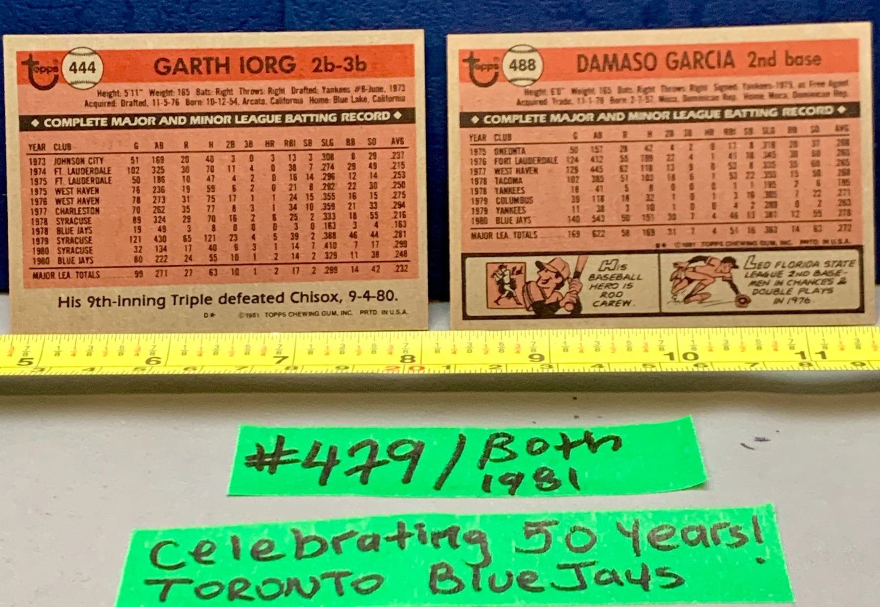 Lot 479 MLB Baseball Card - Toronto Blue Jays 1981 Garth Iorg & Damaso Garcia