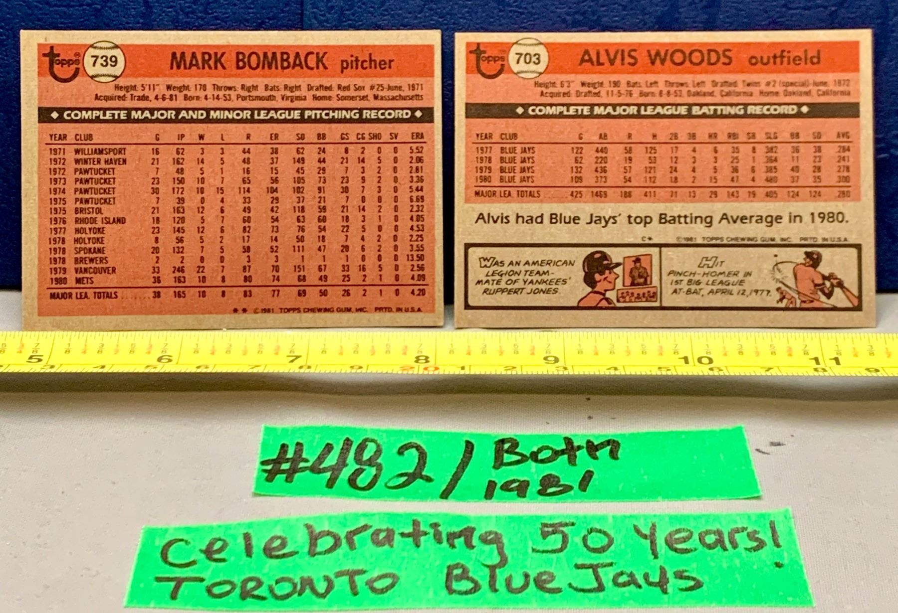 MLB Baseball Card - Toronto Blue Jays 1981 Mark Bomback & Alvis Woods