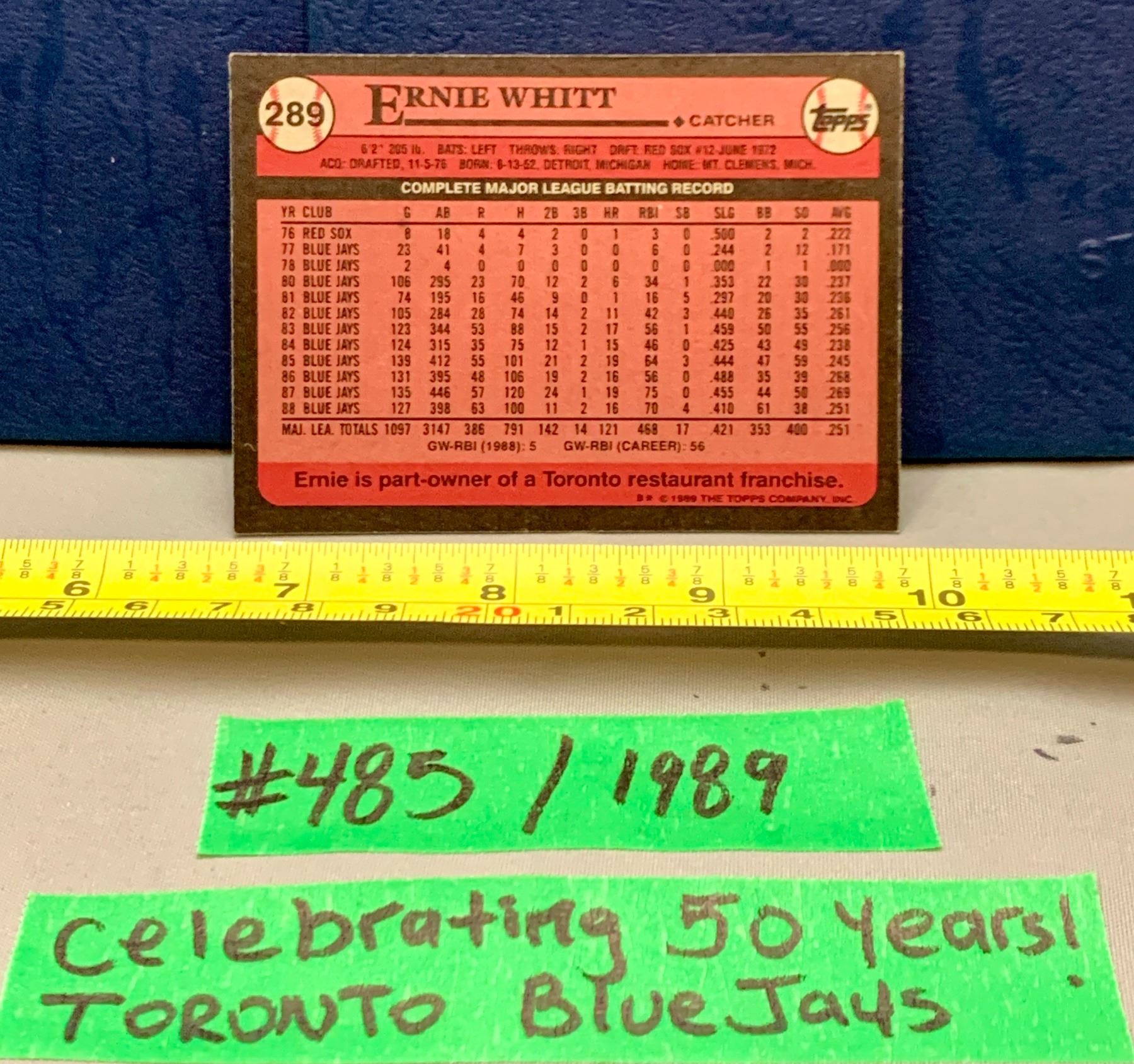 Lot 485 MLB Baseball Card - Toronto Blue Jays 1989 Ernie Whitt