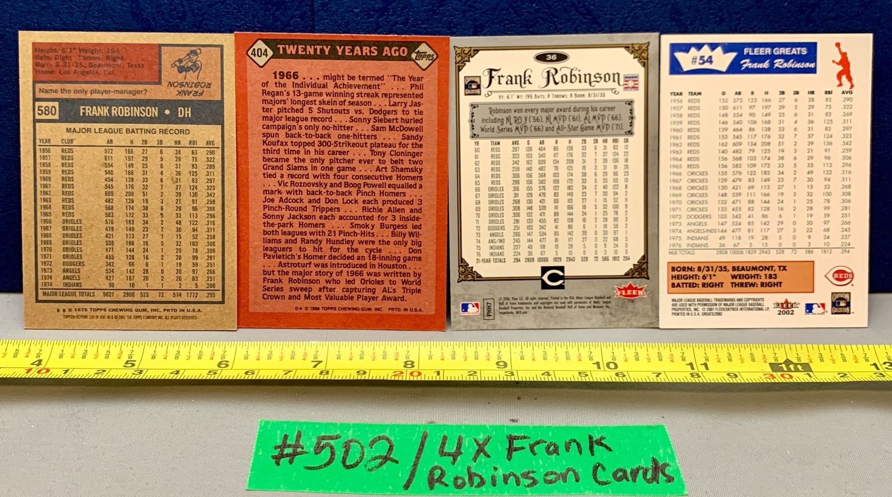 Lot 502 MLB Baseball Card - 4 x Frank Robinson Collectors Cards