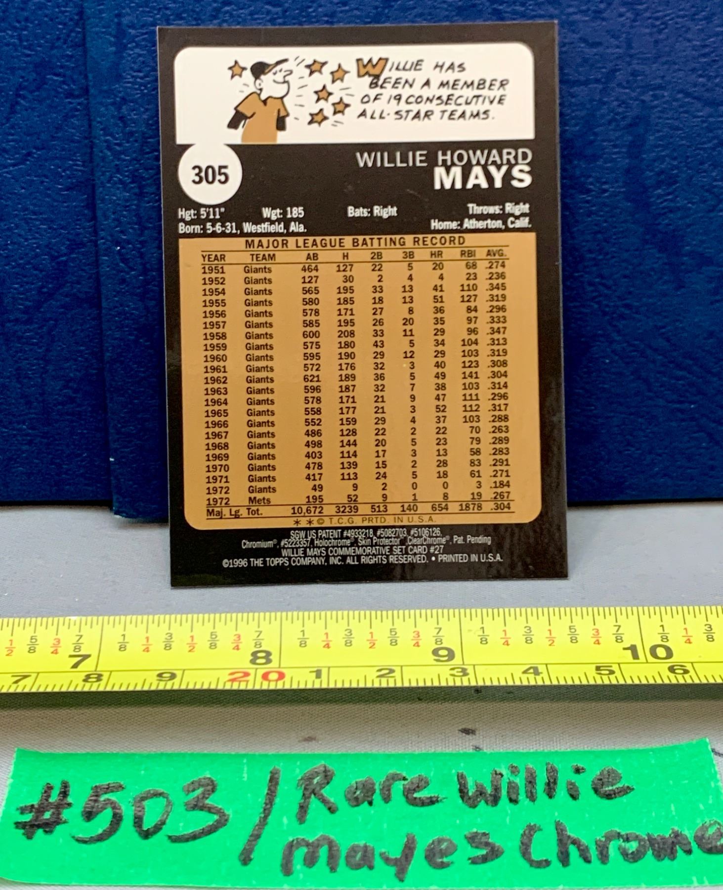 Lot 503 MLB Baseball Card - Rare 1996 Willie Mayes Topps Rainbow Chrome Card!