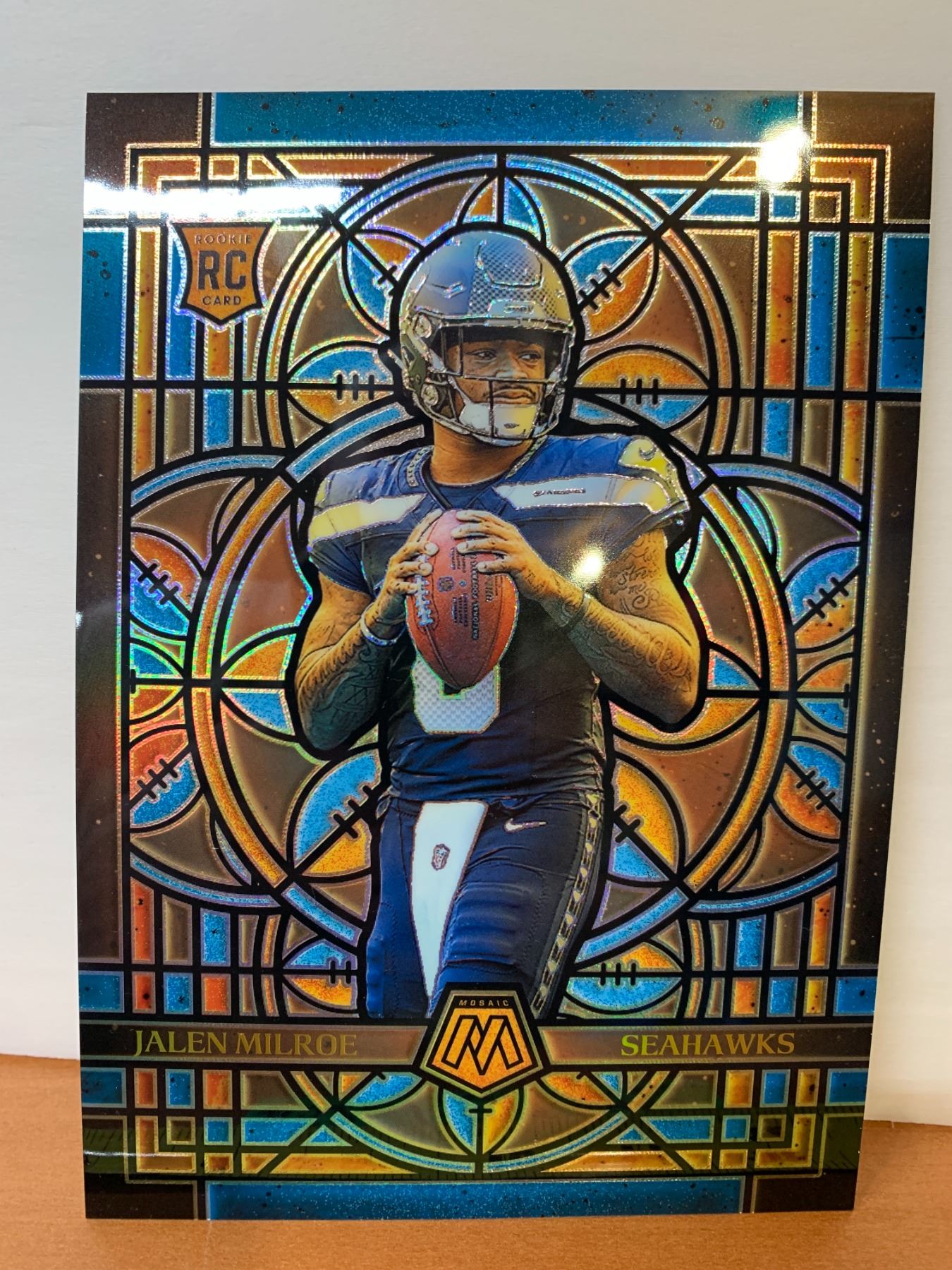 NFL Football Cards - Jalen Milroe Seahawks Rookie Mosaic Stained Glass Jumbo #23 in Toploader!