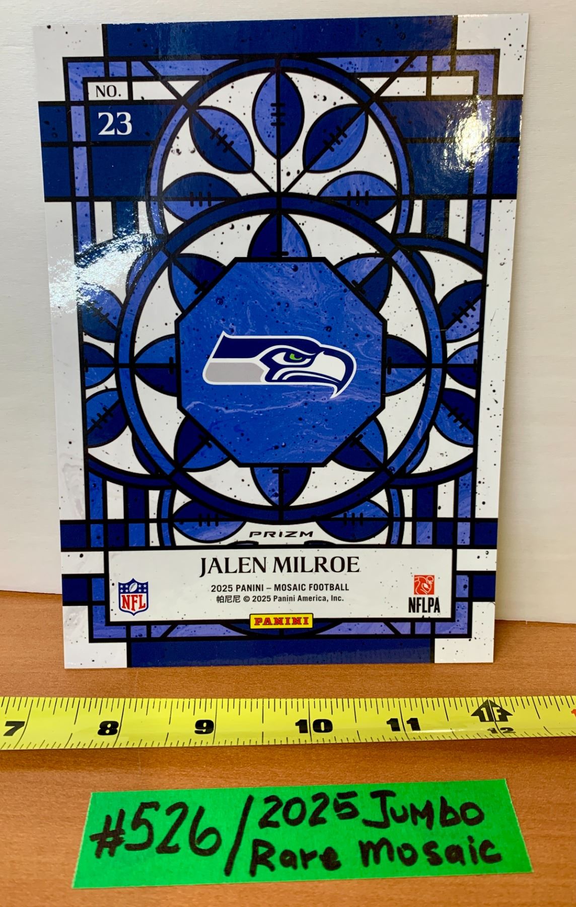 Lot 526 NFL Football Cards - Jalen Milroe Seahawks Rookie Mosaic Stained Glass Jumbo #23 in Toploader!