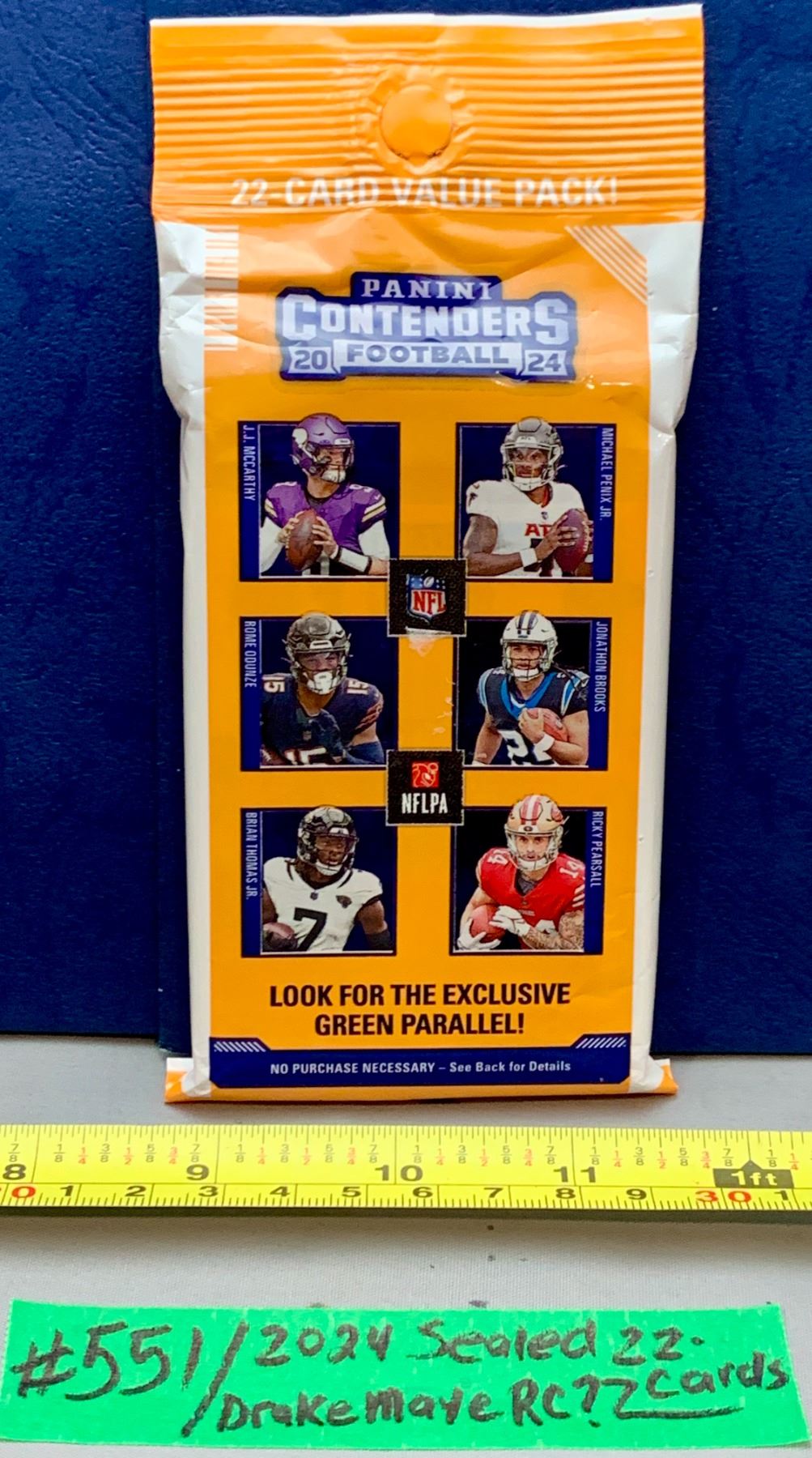 NFL Football Cards - Panini Contenders 2024 NFL 22-Card Sealed Hanger Pack RC? Maye, Nix, Williams ?