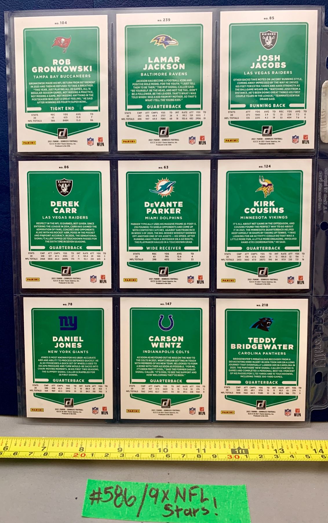 Lot 586 NFL Football Cards - 9 x NFL Stars in Sleeve