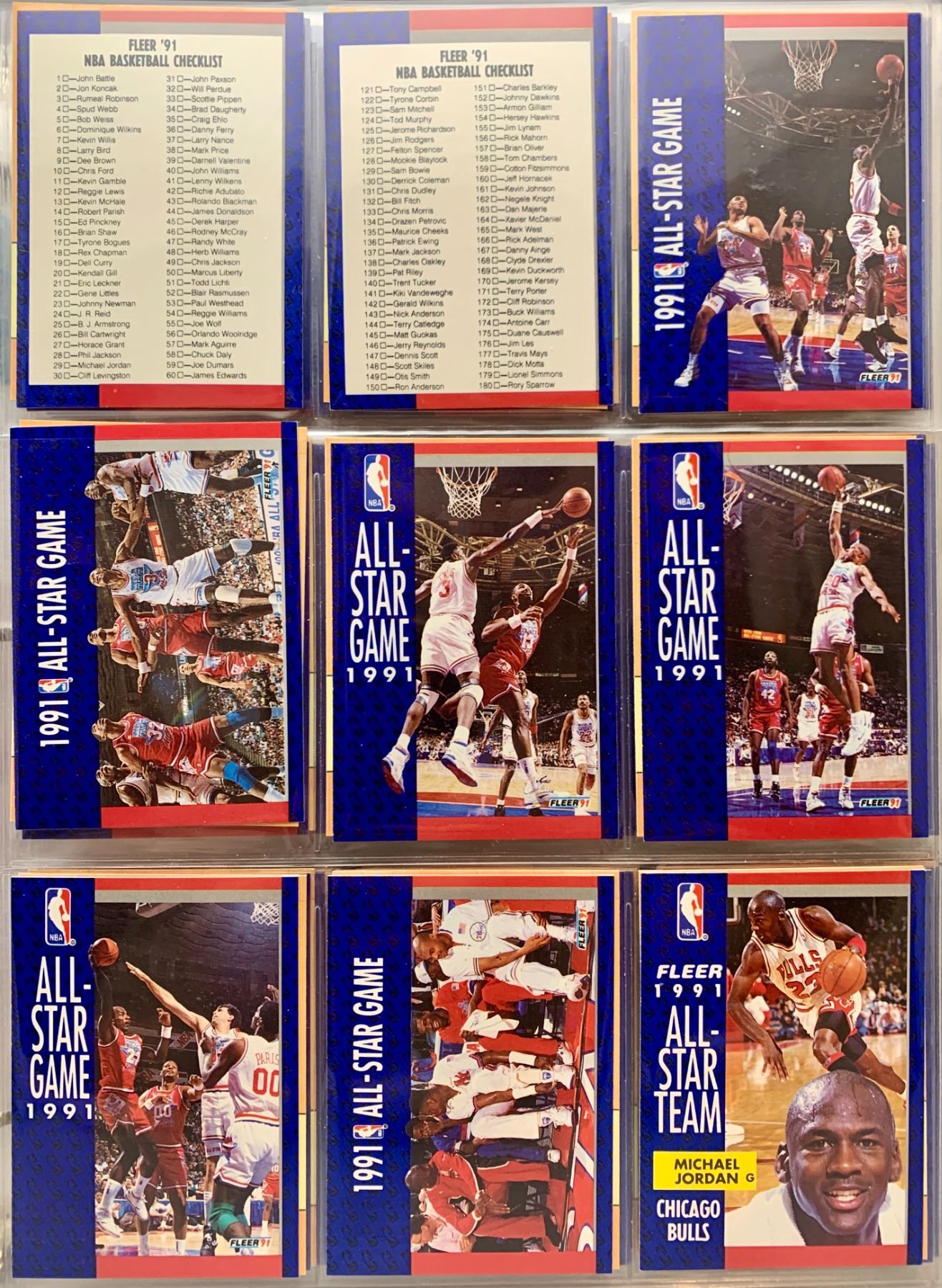 NBA Basketball - Binder filled with 225 x 1991 Fleer BB Cards Including 2 x Michael Jordan & Other Stars!
