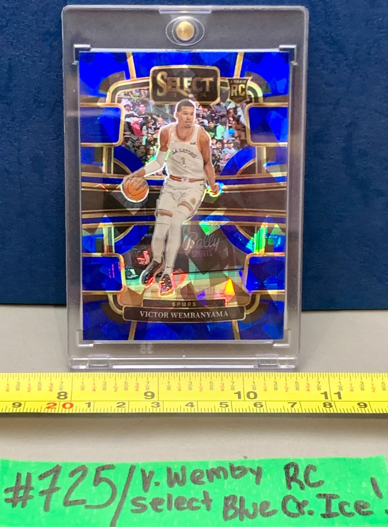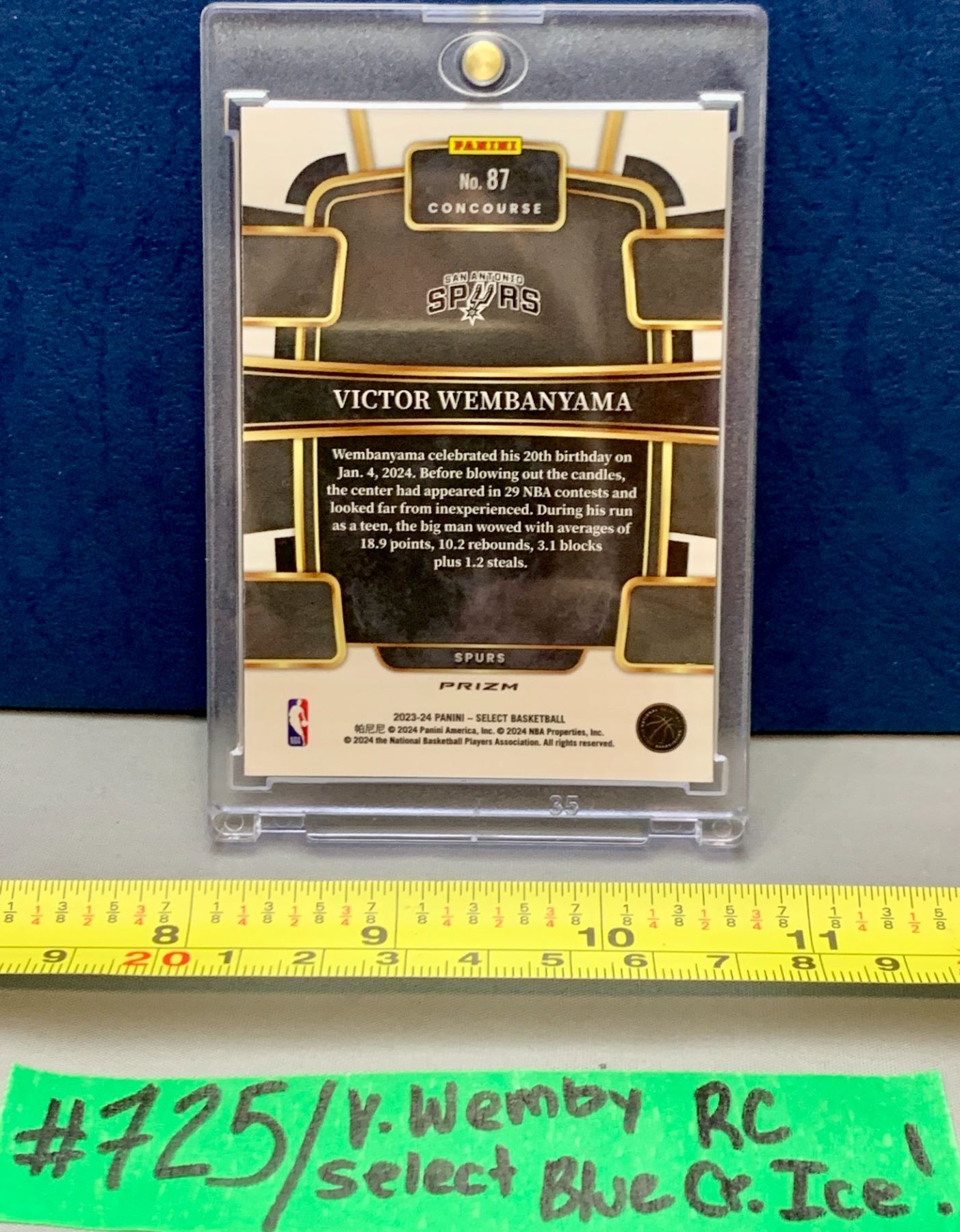 Lot 725 NBA Basketball - 2023-24 Victor Wembanyama Rare Blue Cracked Ice Select Prizm Rookie Card