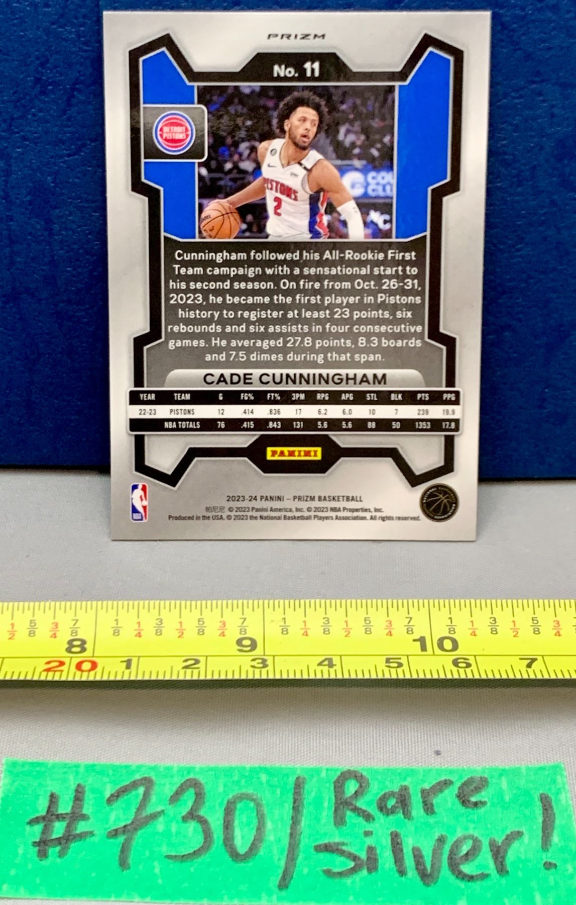 Lot 730 NBA Basketball - 2023 Panini Prizm Cade Cunningham RARE Silver