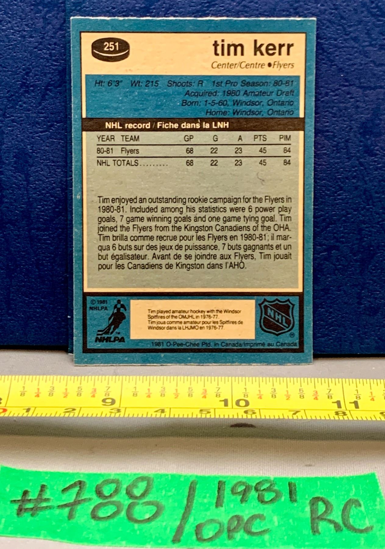 Lot 788 NHL HOCKEY - OPC 1981 Tim Kerr Rare Rookie Card