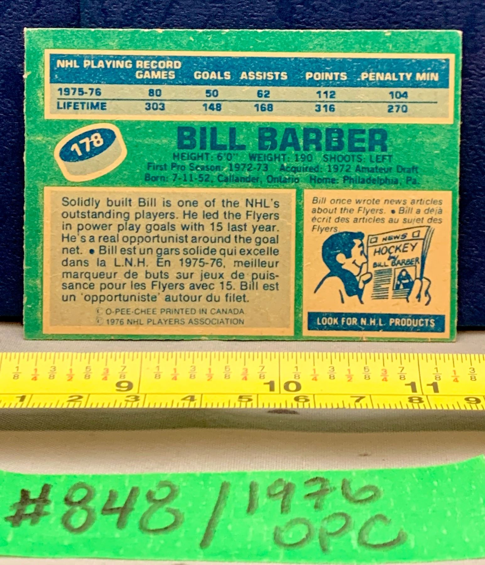 Lot 848 NHL HOCKEY - OPC 1976 Bill Barber