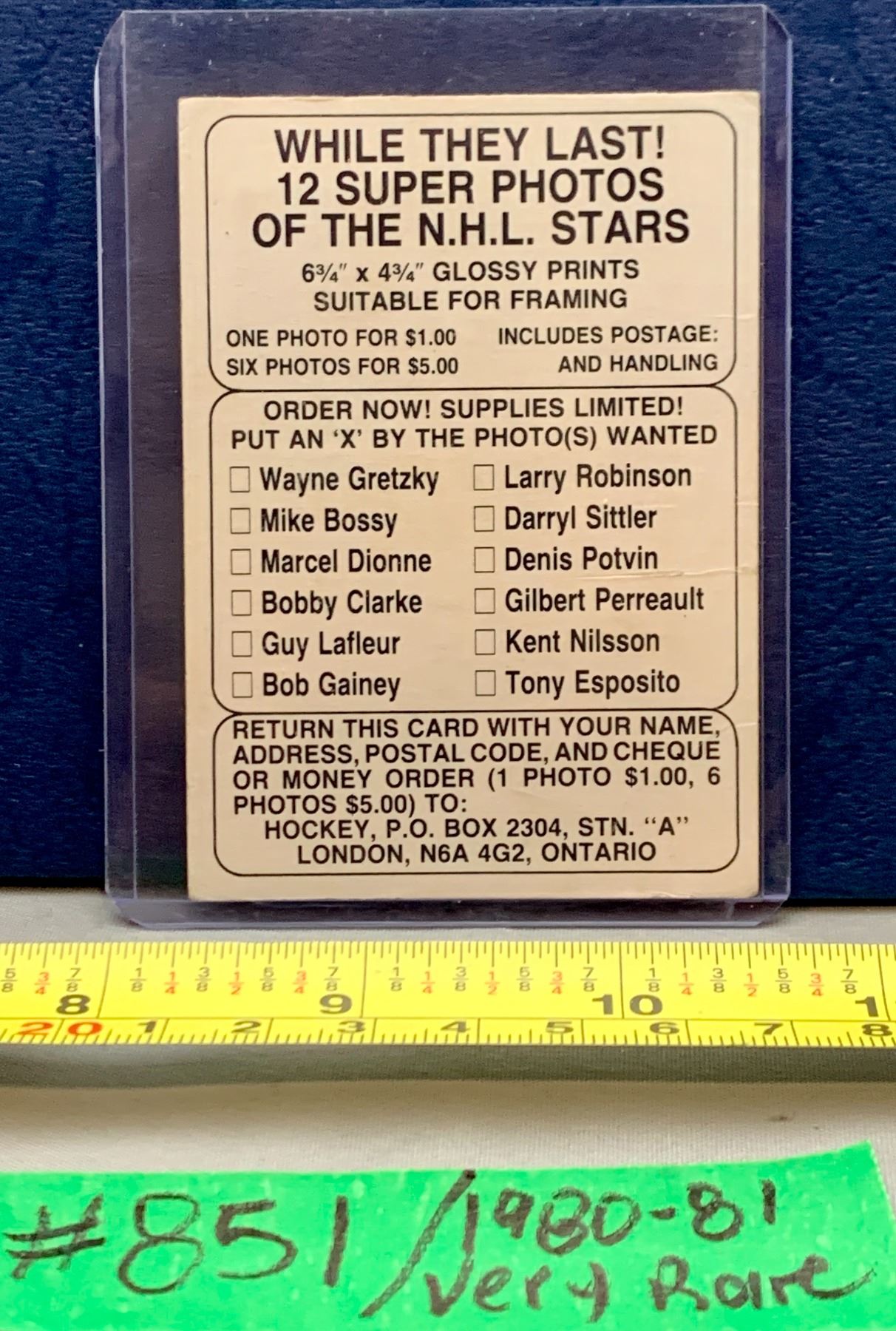 Lot 851 NHL HOCKEY - 1980-81 vintage & Rare Super Glossy Photos Original Order Card sized form