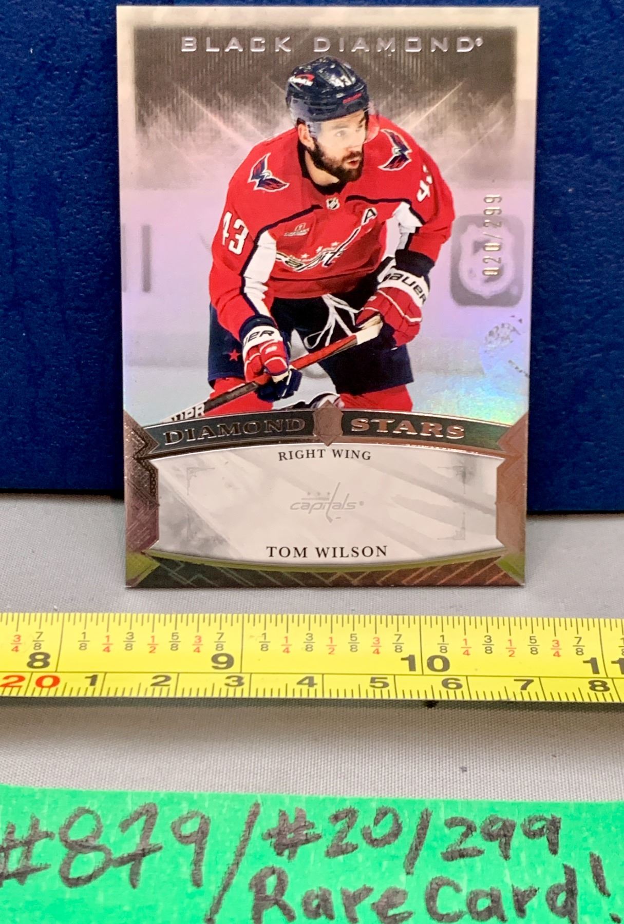 NHL HOCKEY - Rare Black Diamond Tom Wilson Rainbow #020/299 Thick Card! A Beauty!
