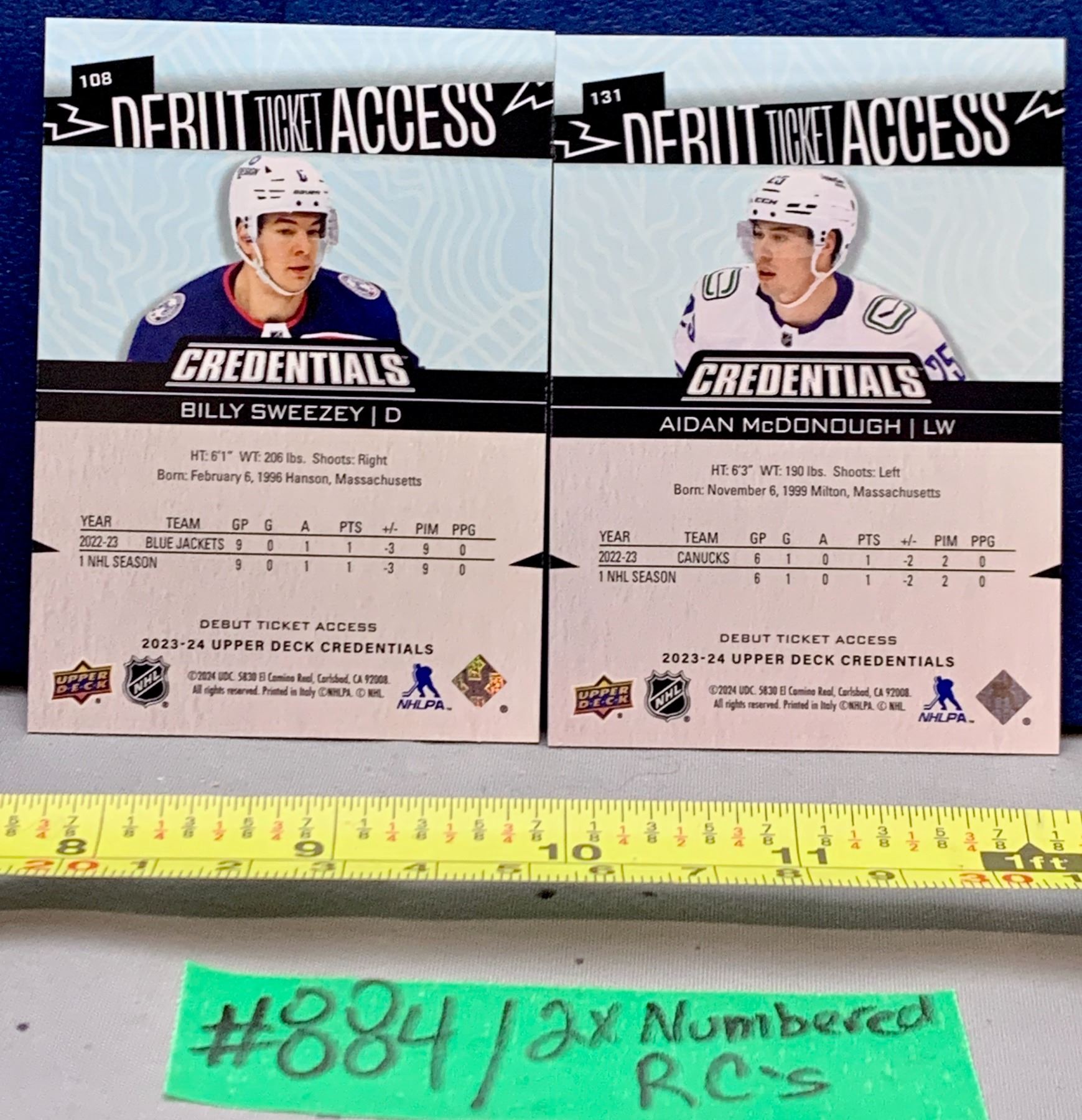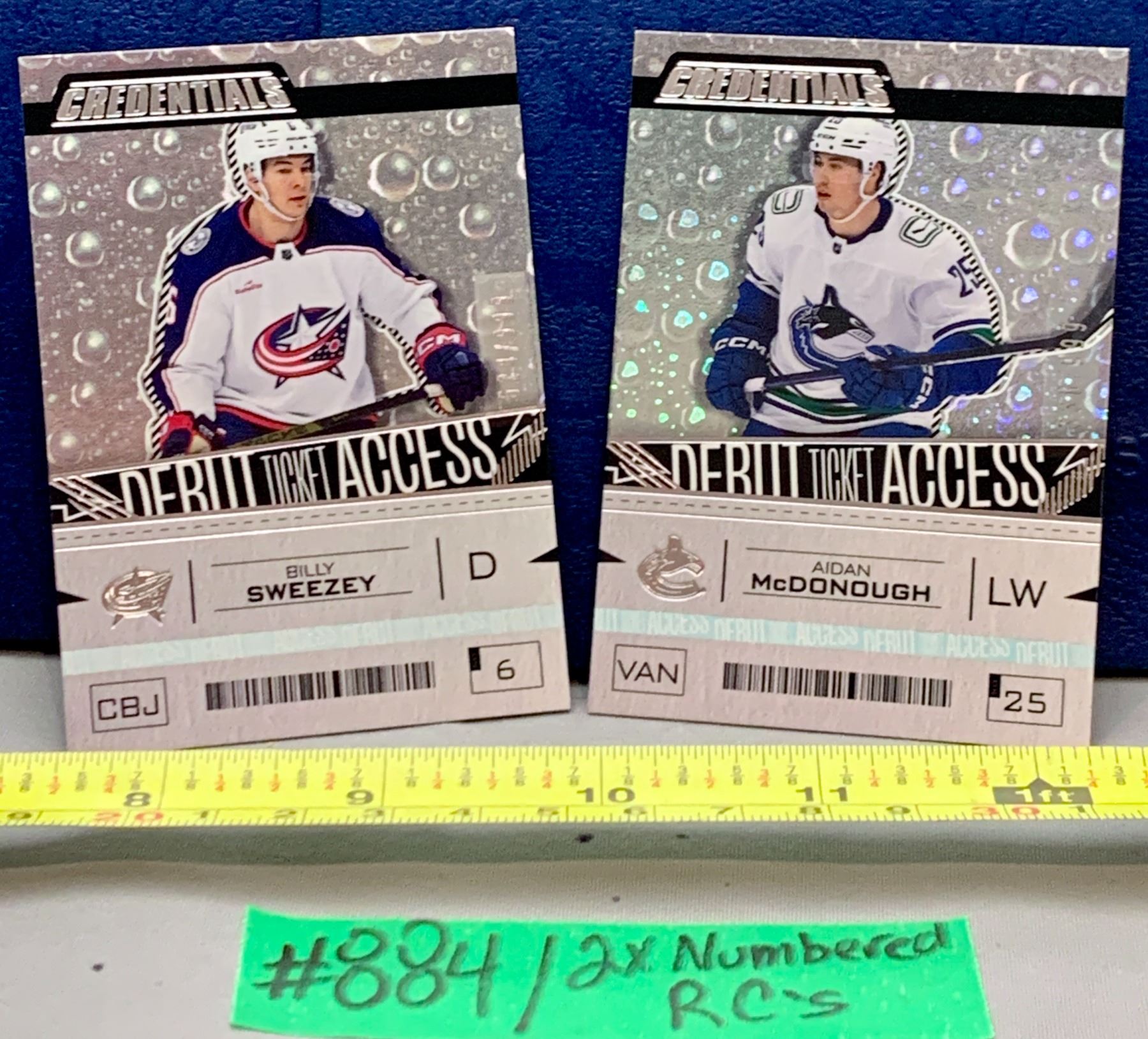 Lot 884 NHL HOCKEY - 2 x Credentials Debut Ticket Access Gold and Silver Rookie Cards - Sweezey