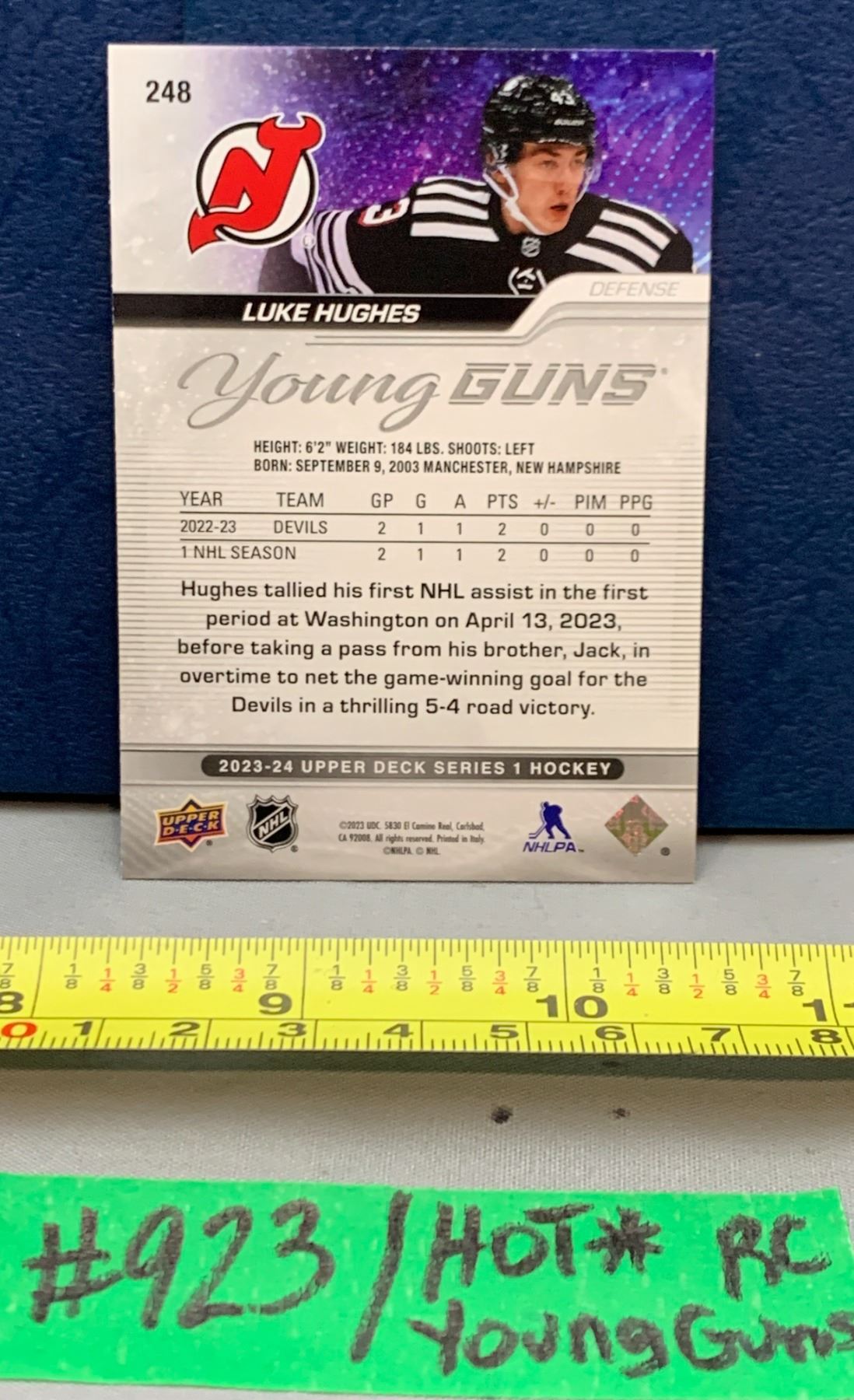Lot 923 NHL HOCKEY - Luke Hughes Highly Sought After Young Guns Rookie Card