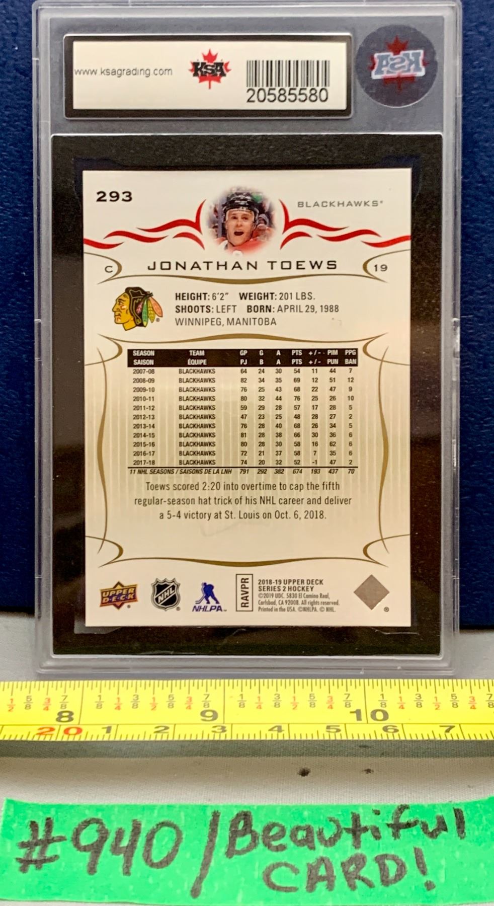 Lot 940 NHL HOCKEY - 2019-20 Jonathan Toews Rare Speckled Rainbow KSA 9.5 Gem Mint!