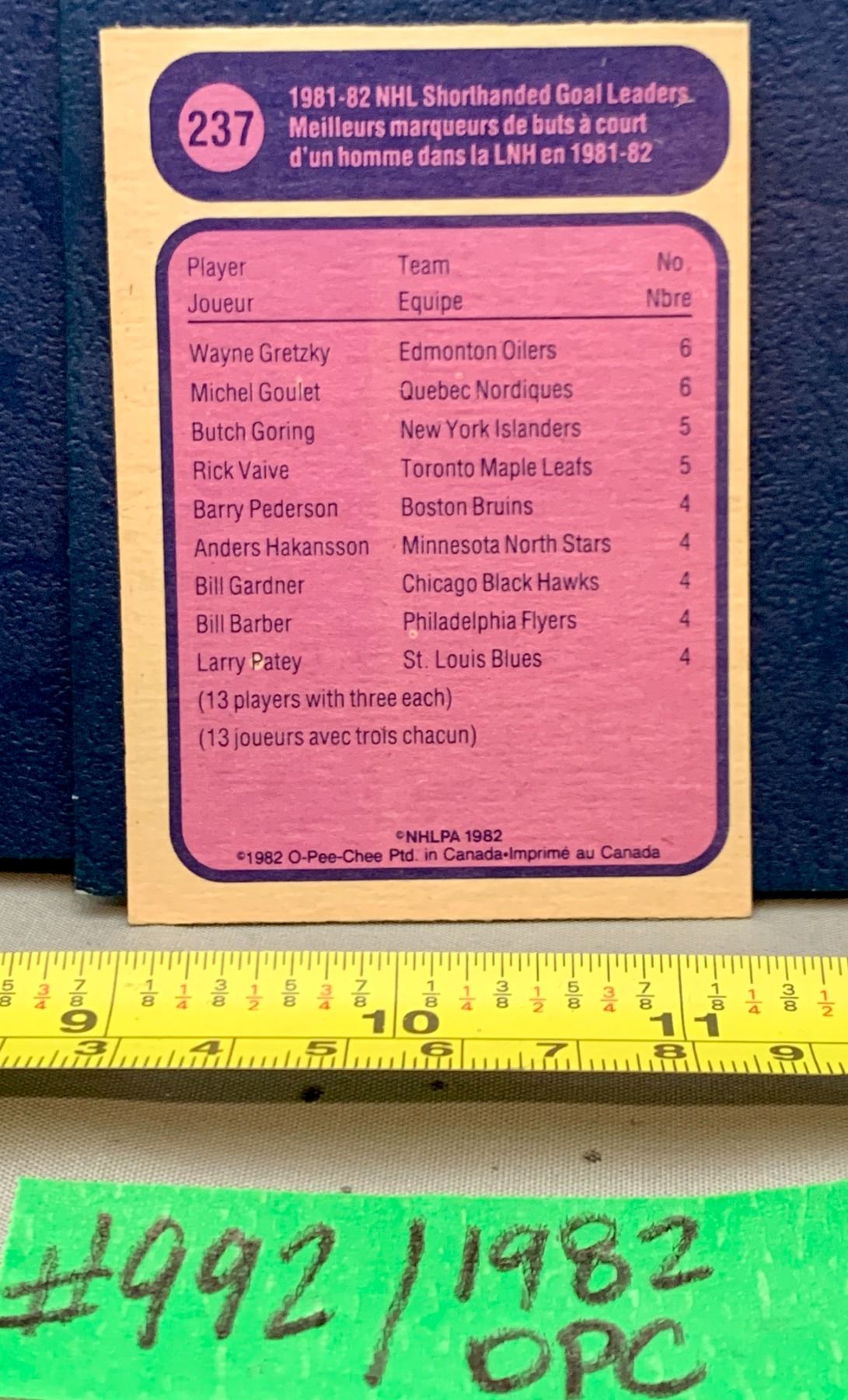 Lot 992 NHL HOCKEY - Wayne Gretzky Vintage OPC 1982 Rare Card! High Grade!