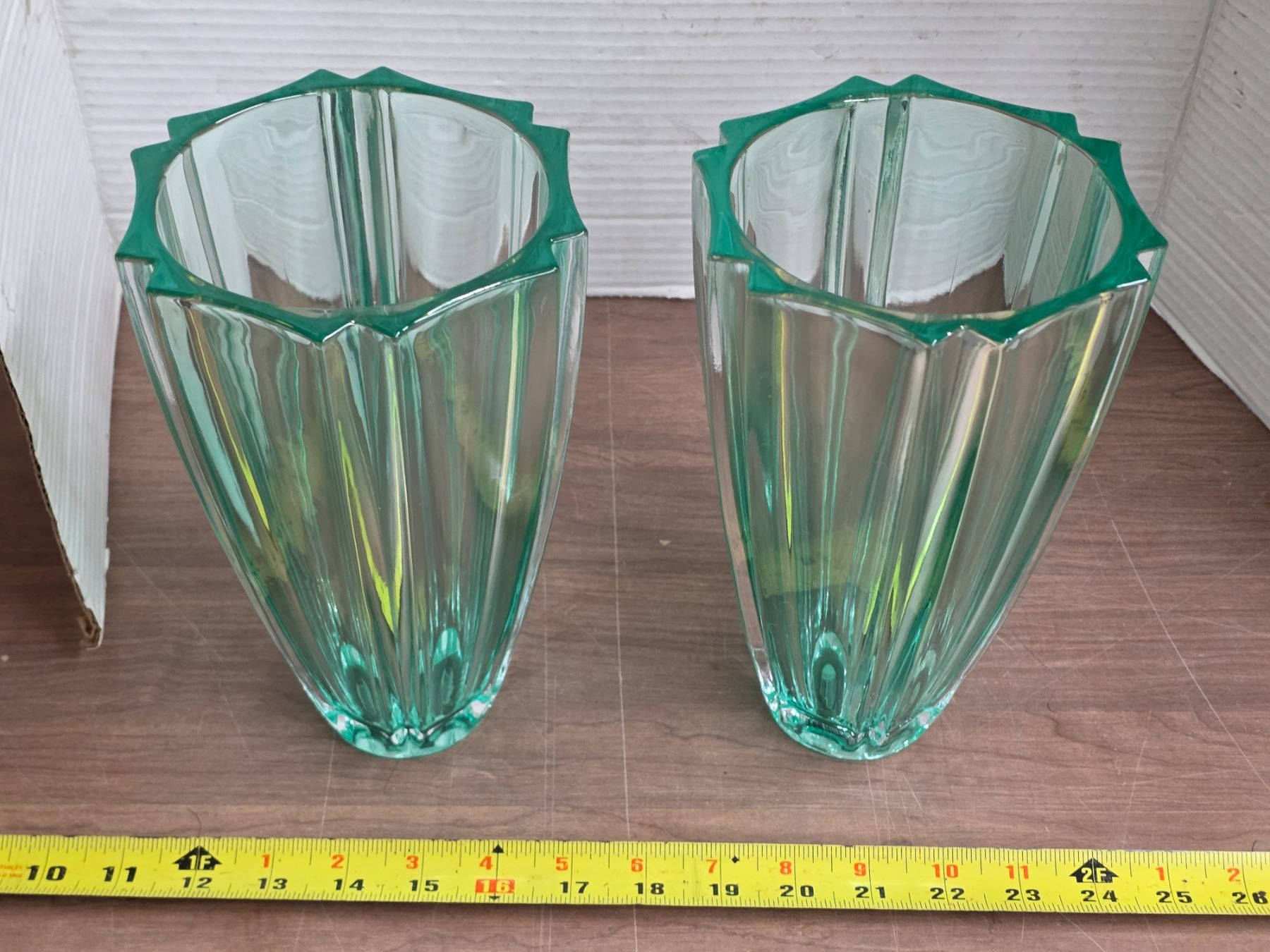 Lot 1016 2 heavy green vases-8"H