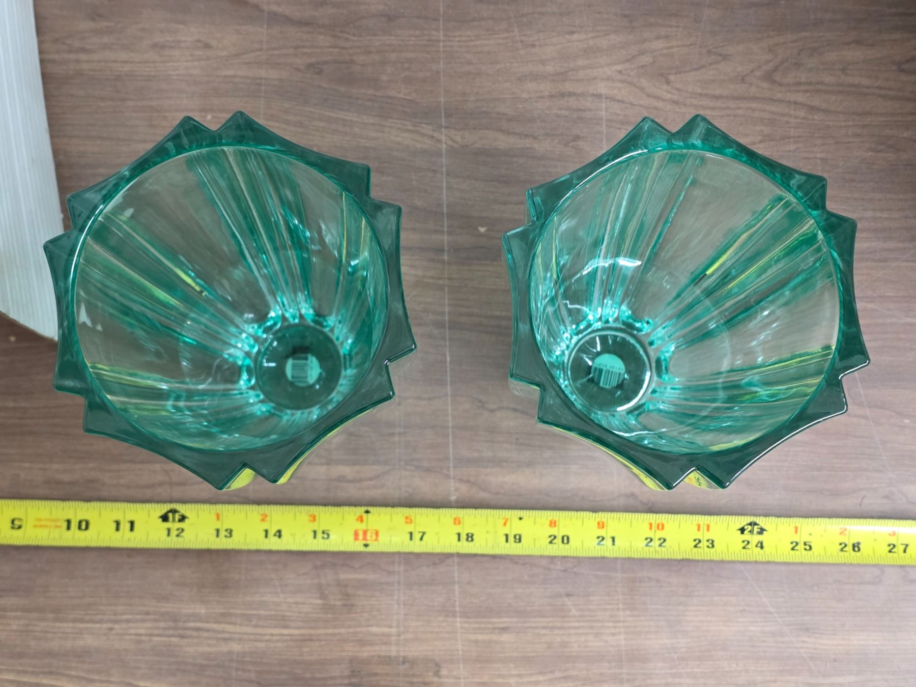 2 heavy green vases-8"H