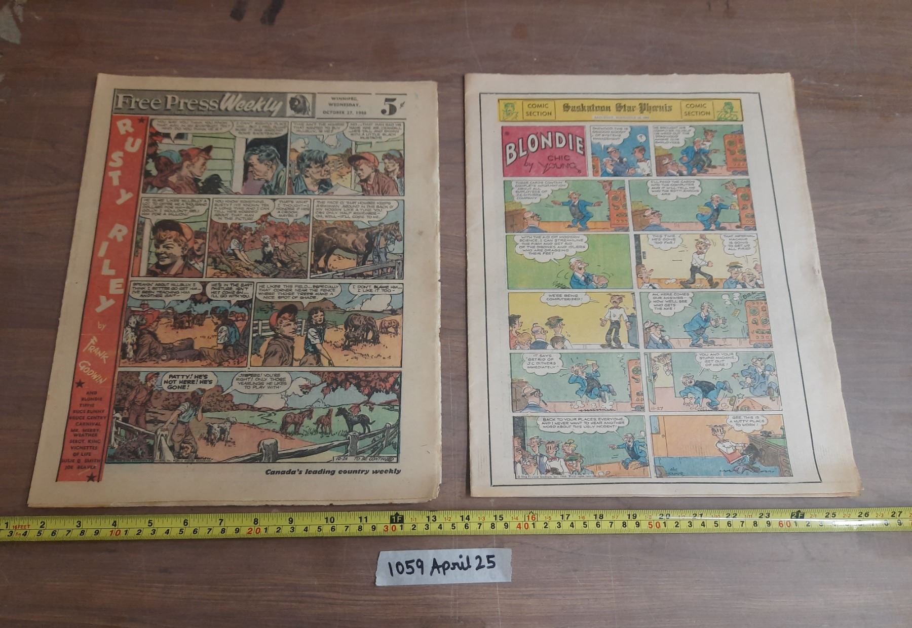 Lot 1059 1948 Winnipeg Free Press Weekly Comic Strip and 1966 Saskatoon Star Pitoenix Comic Strip.
