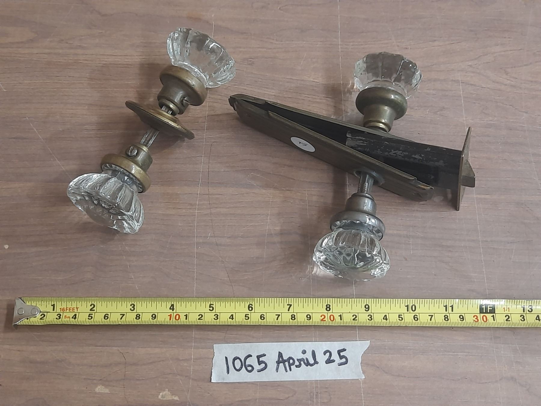 Lot 1065 (2) Antique Glass Door Knobs One with One Has Latch and Side Plates.
