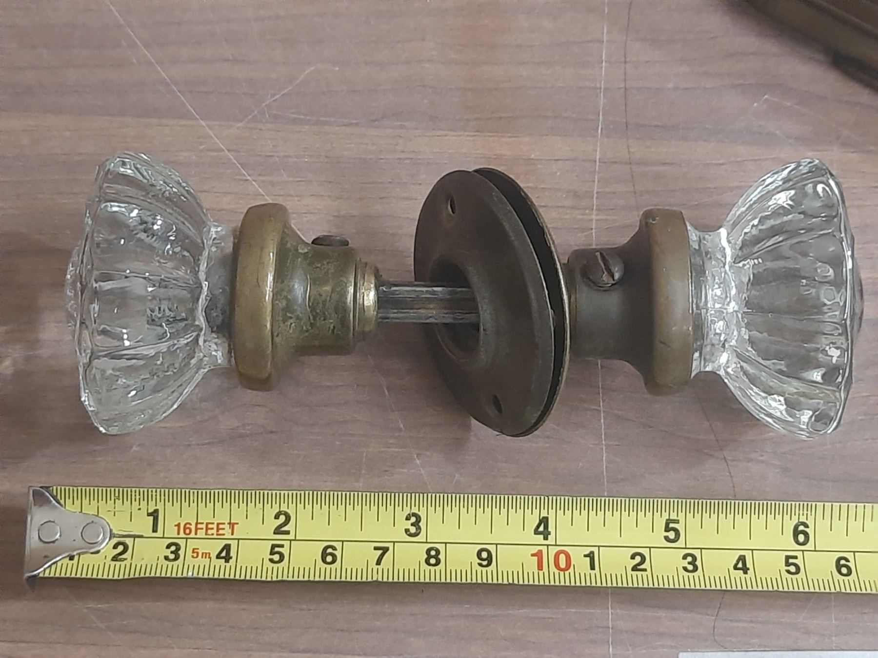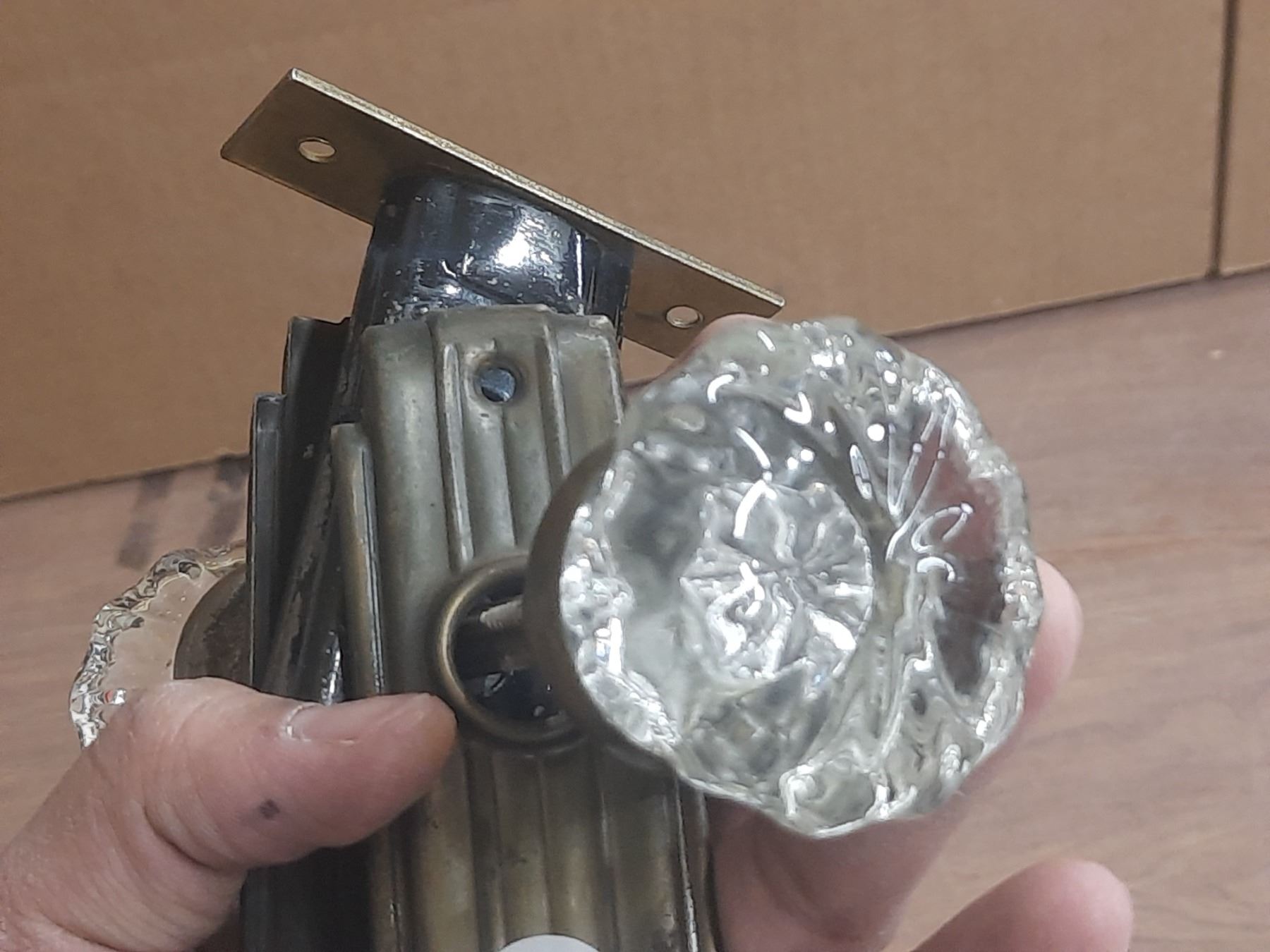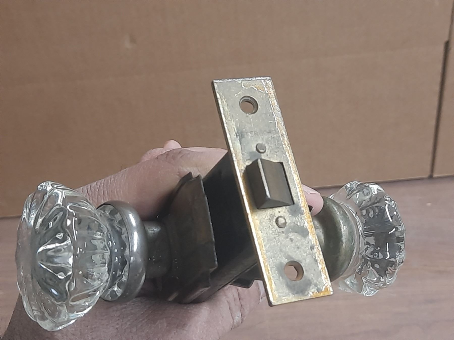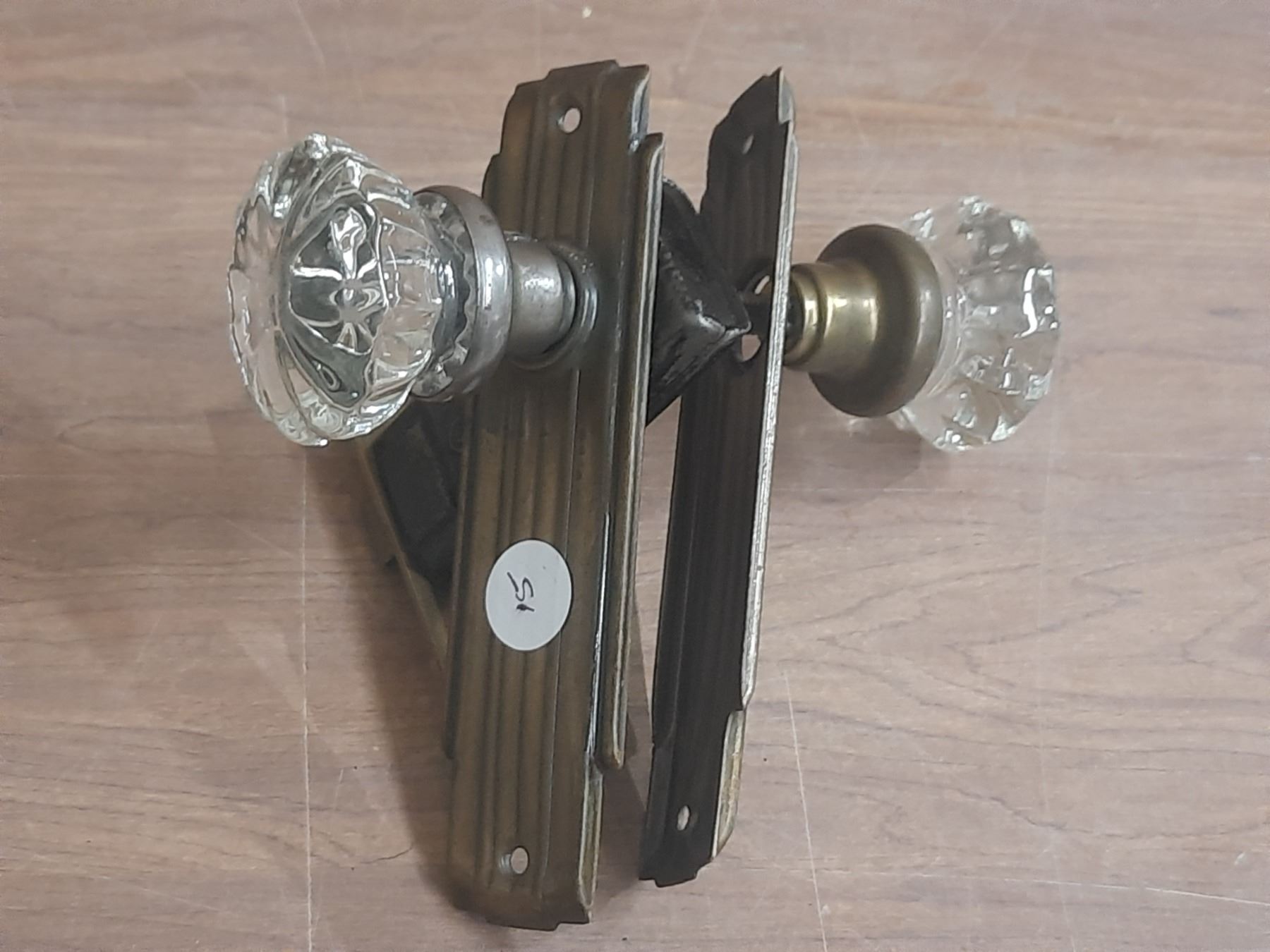 (2) Antique Glass Door Knobs One with One Has Latch and Side Plates.