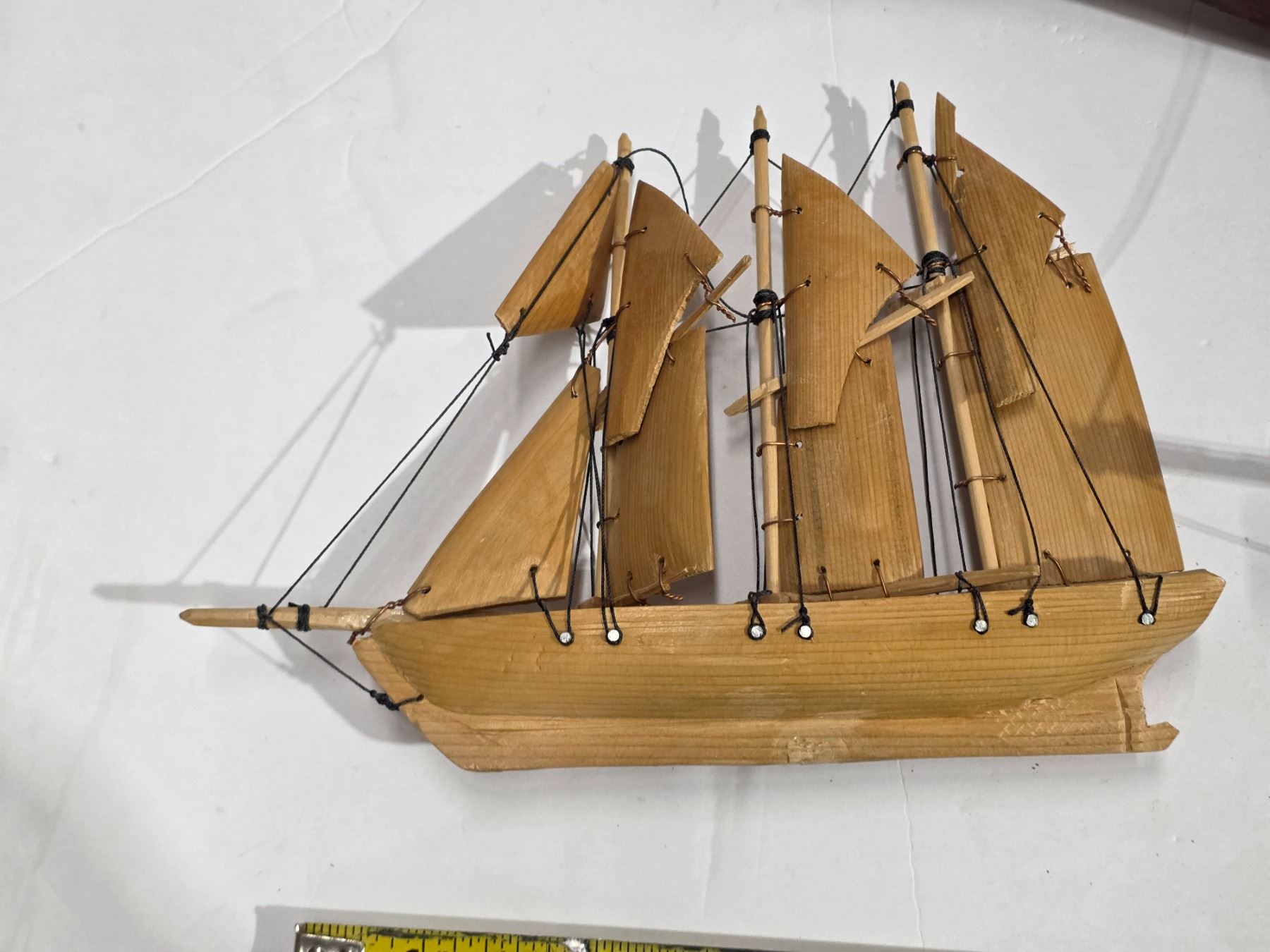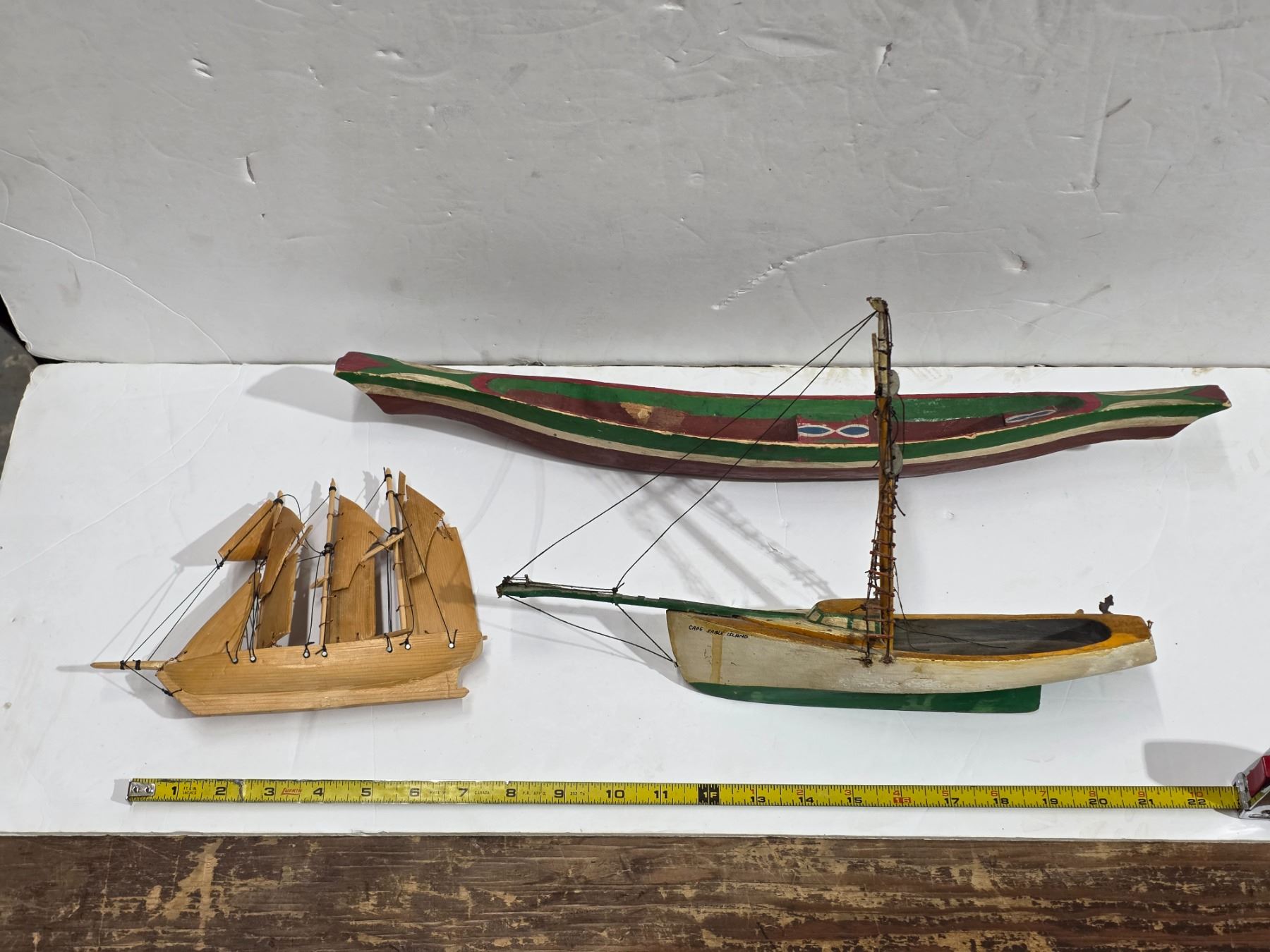 3 wooden hand crafted boats