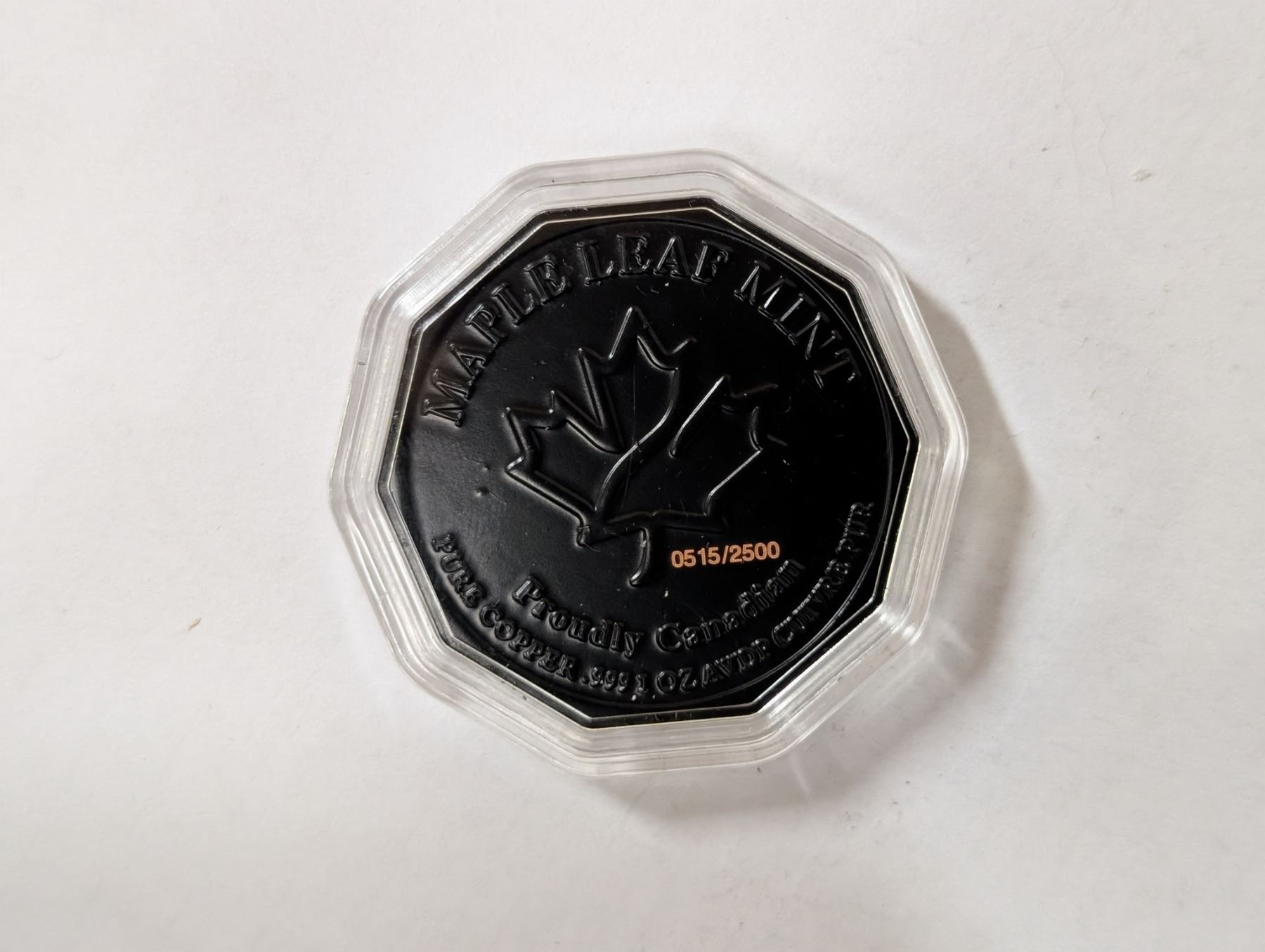 Maple Leaf Mint Proudly Canadian Pure Copper .999 1 oz AVDP Cutvre Pur Bee Design 0515/2500