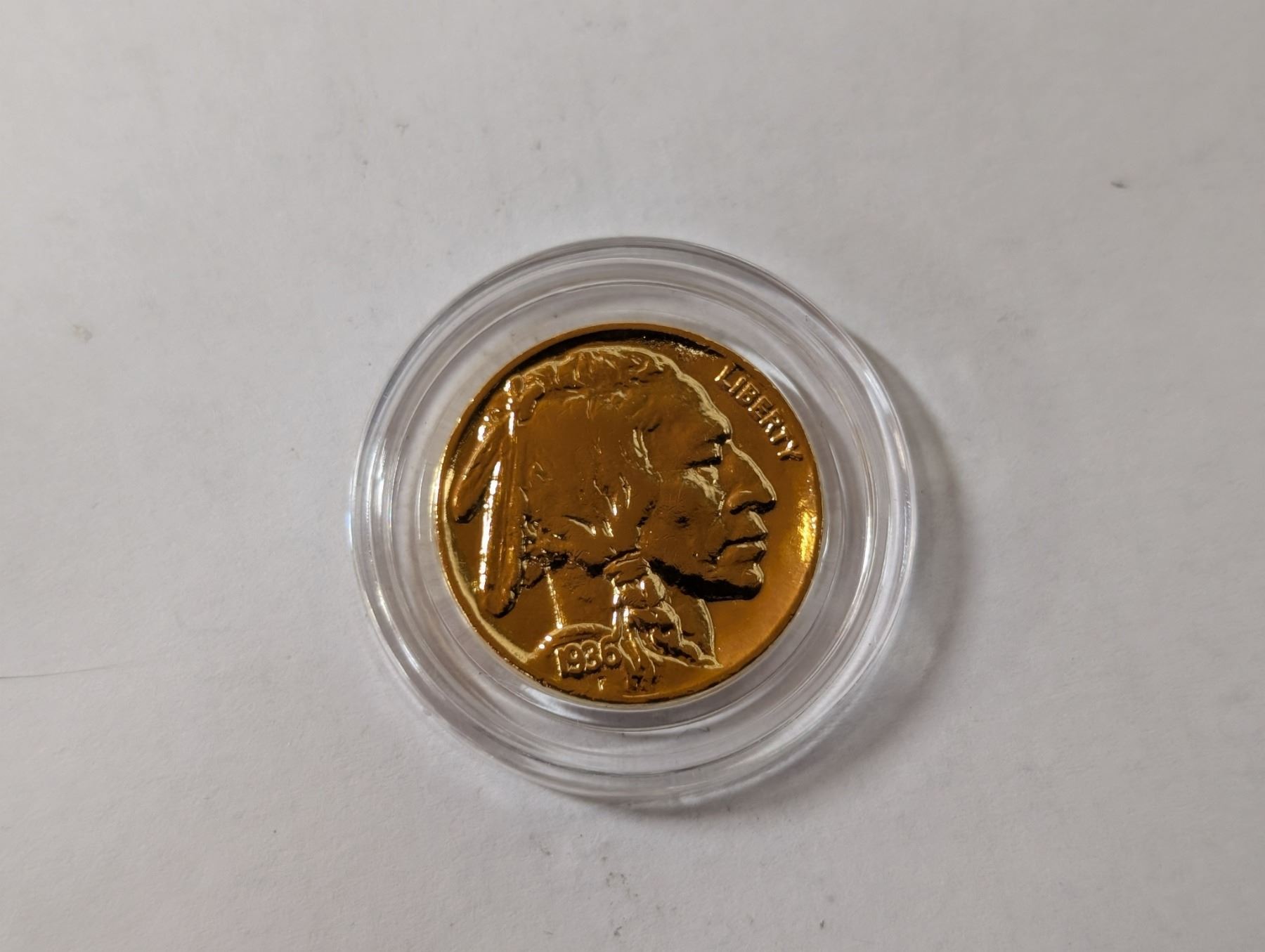 Lot 1270 (Unverified) 24K Gold Gilded Copper United States America E Pluribus Unum 5 Cent Coin 1936
