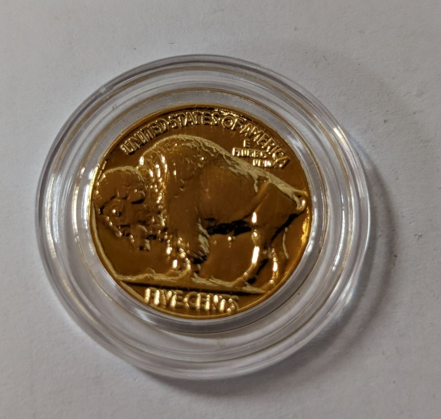 (Unverified) 24K Gold Gilded Copper United States America E Pluribus Unum 5 Cent Coin 1936