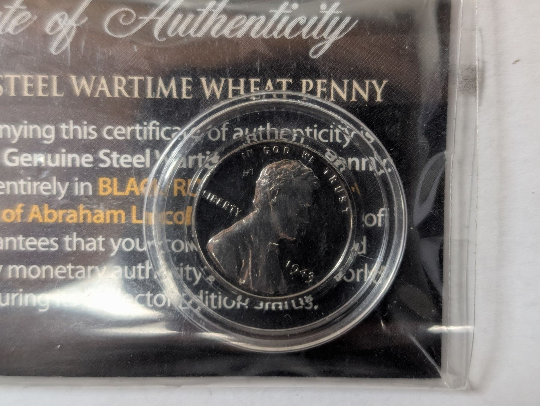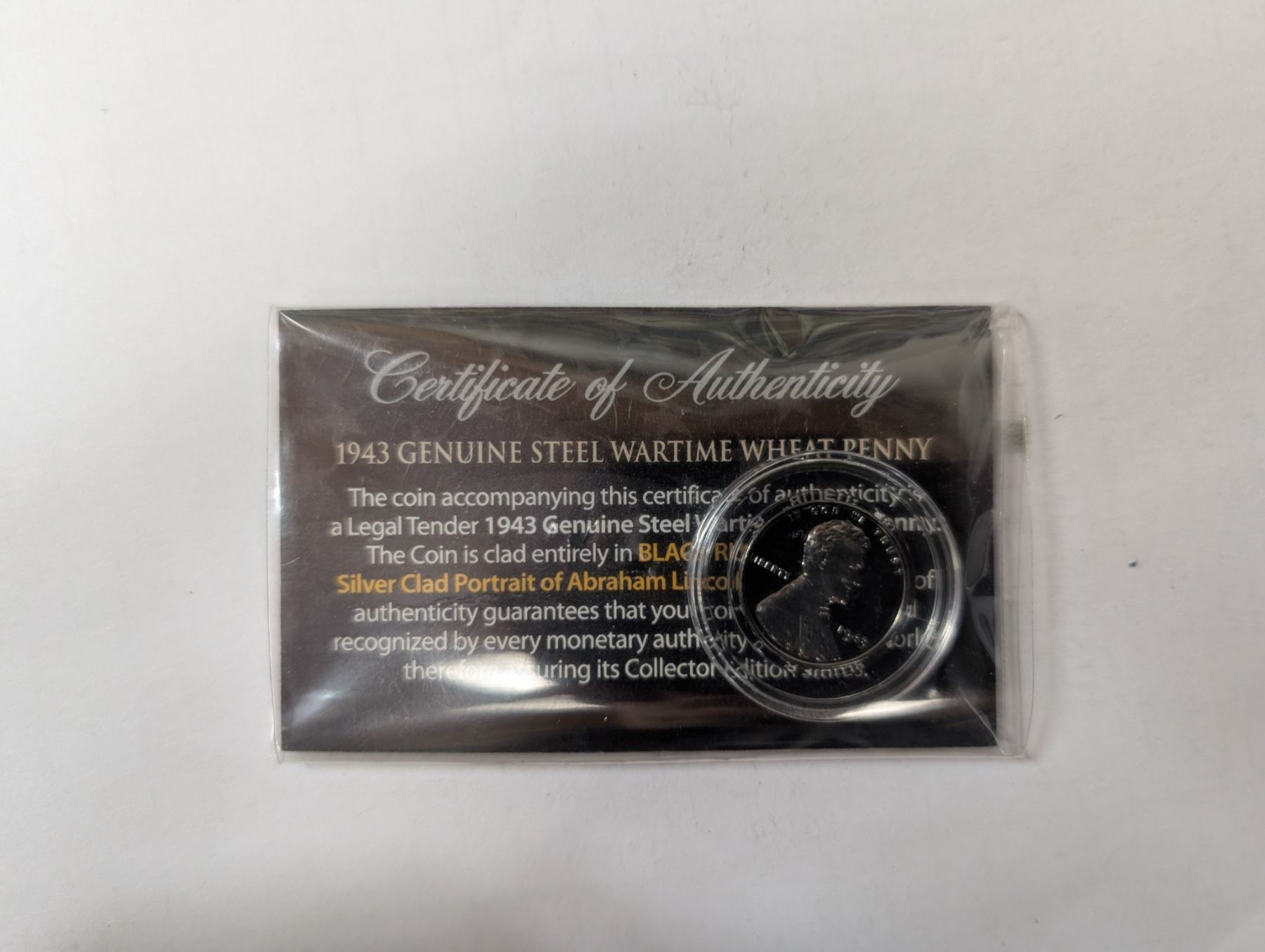 1943 Genuine Steel Wartime Wheat Penny w/ Certificate of Authenticity