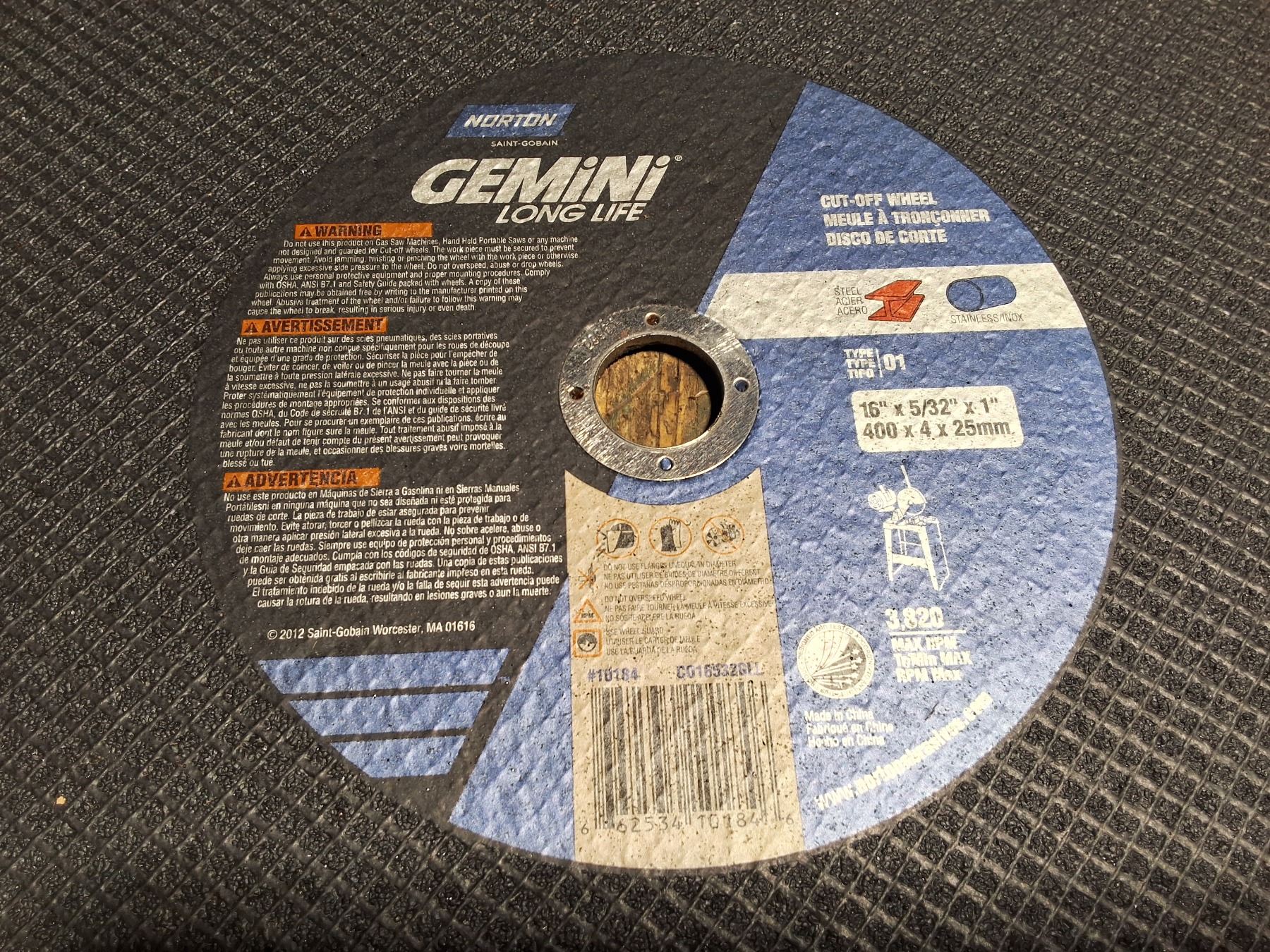 1 Cut off wheel Norton 16" × 5/32" × 1"