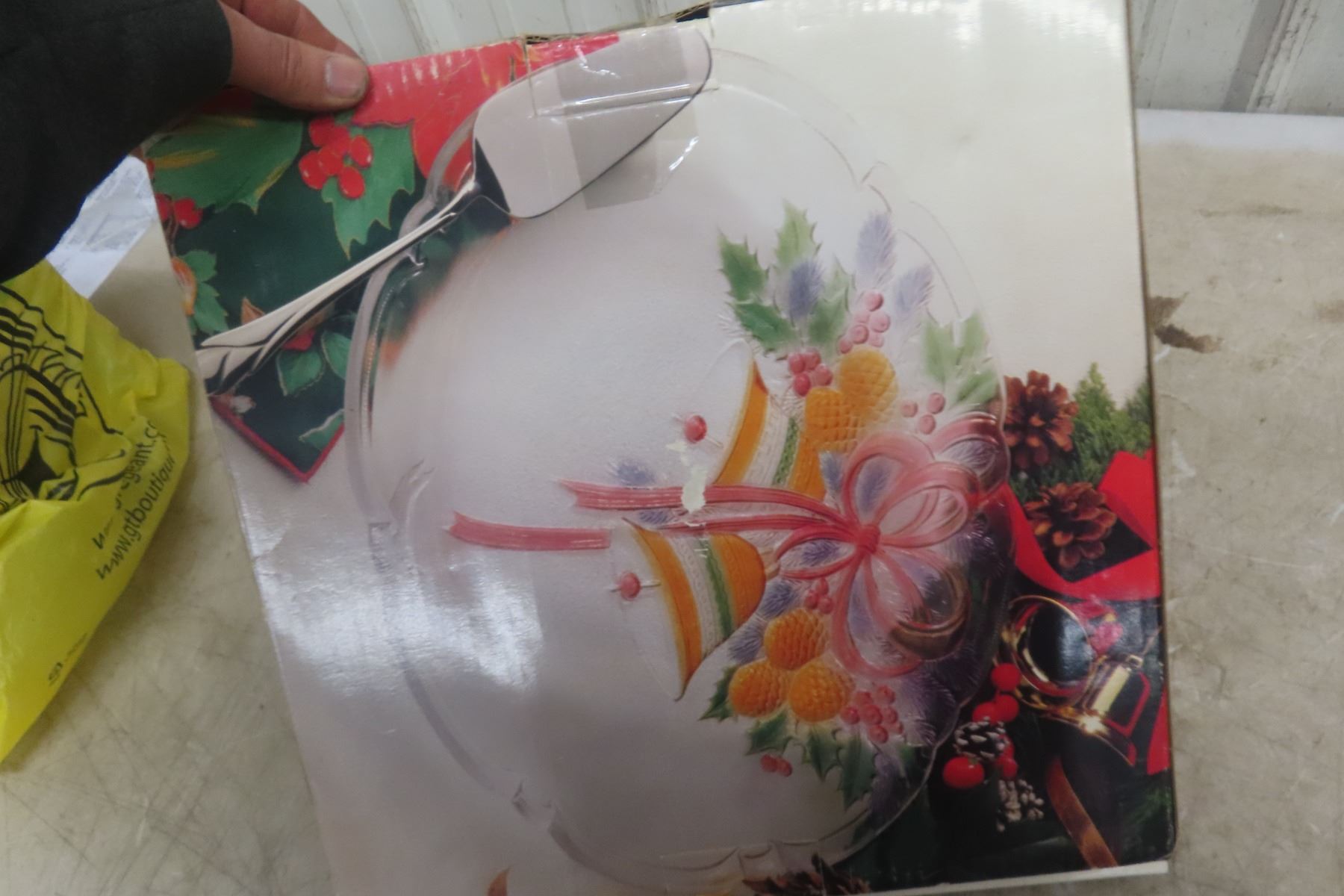 Lot 79 Hostess Platter Festive Bells 14 3/4'' , 2 Sets in Boxes Blue Icicle Lights Indoor/Outdoor