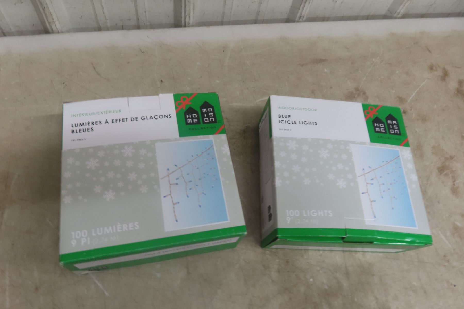 Hostess Platter Festive Bells 14 3/4'' , 2 Sets in Boxes Blue Icicle Lights Indoor/Outdoor