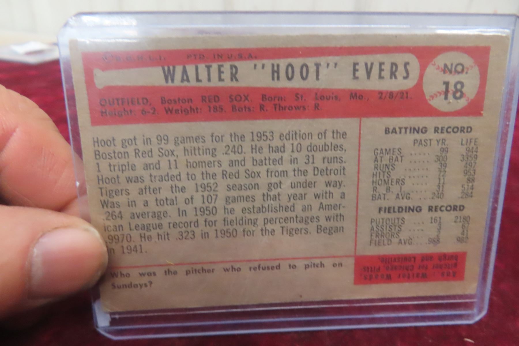 Lot 83b 1950 Walter ''Hoot'' Evers Boston Red-Sox Card