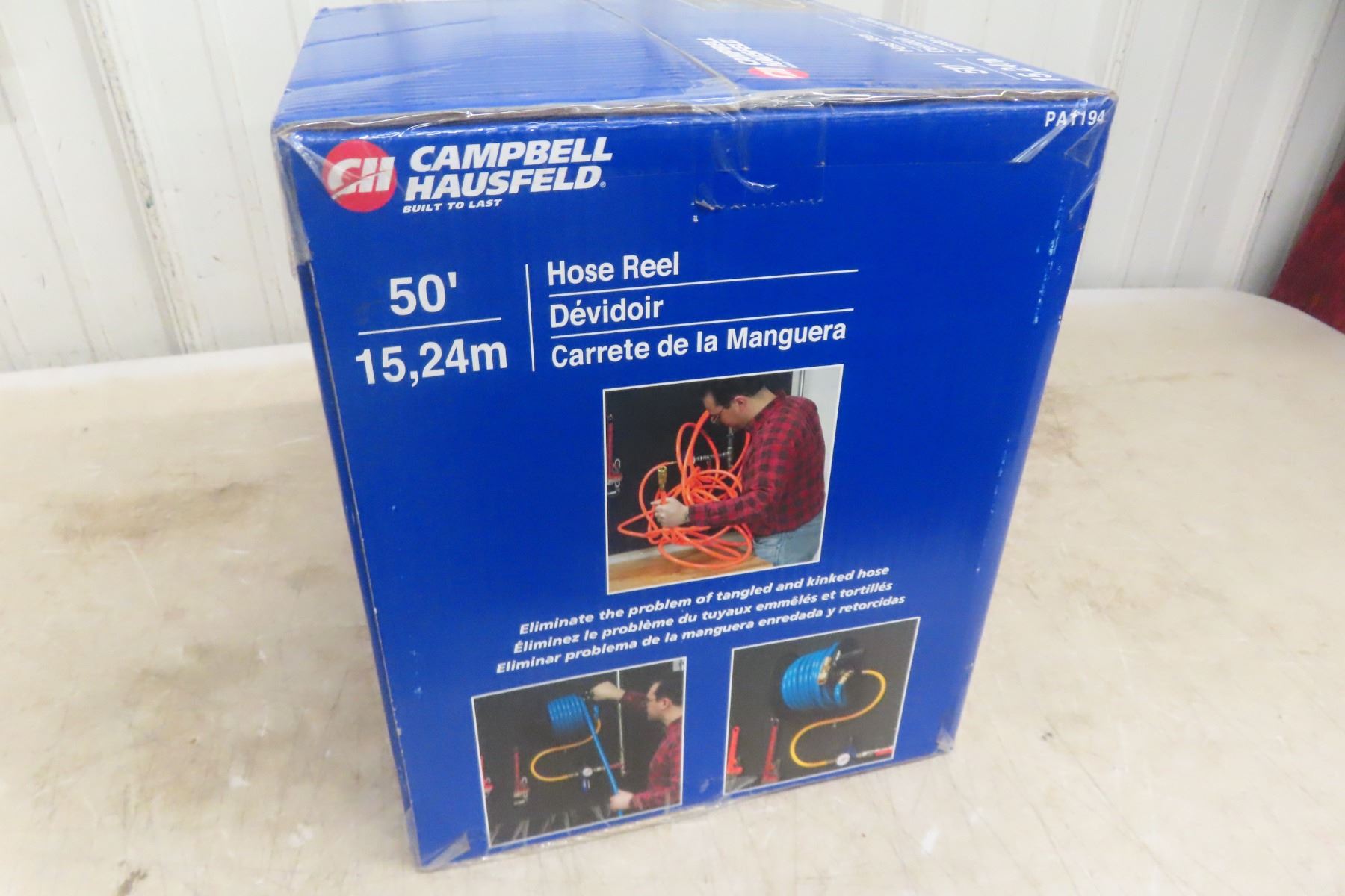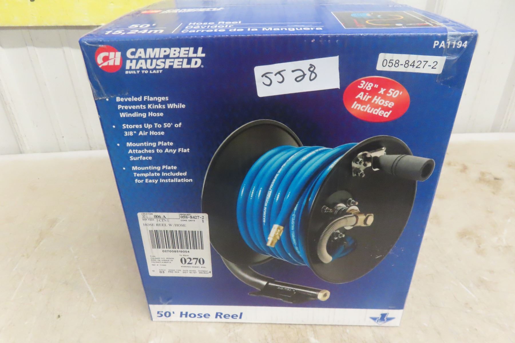 Lot 28 New Campbell Hausfield 3/8'' Air Hose 50ft on Retracting Reel