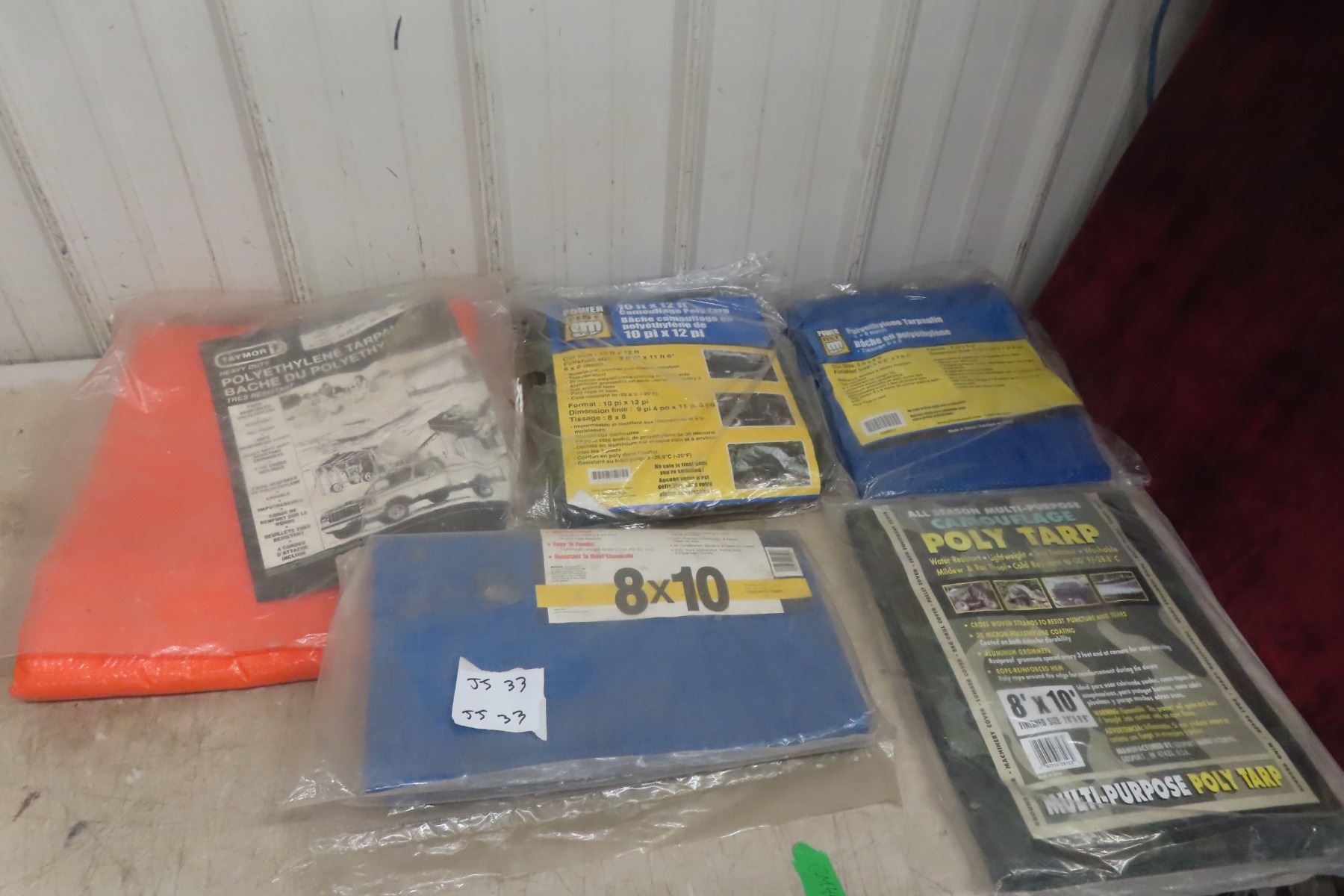 Lot 33 5 New Tarps (2) 10' x 12' , (2) 8' x 10', (1) 8' x 8'