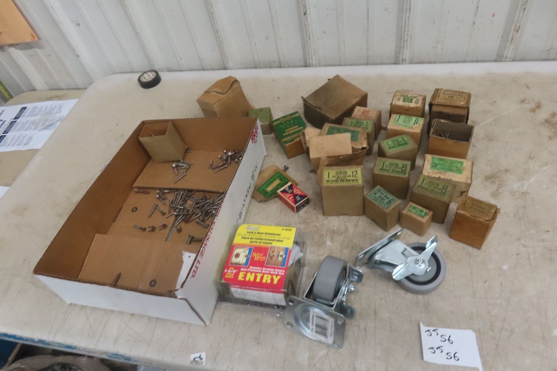 New Old Stock Screws - Great for Tuning Up Old Furniture, Plus 2 Casters, Lock&Door Reinforcer