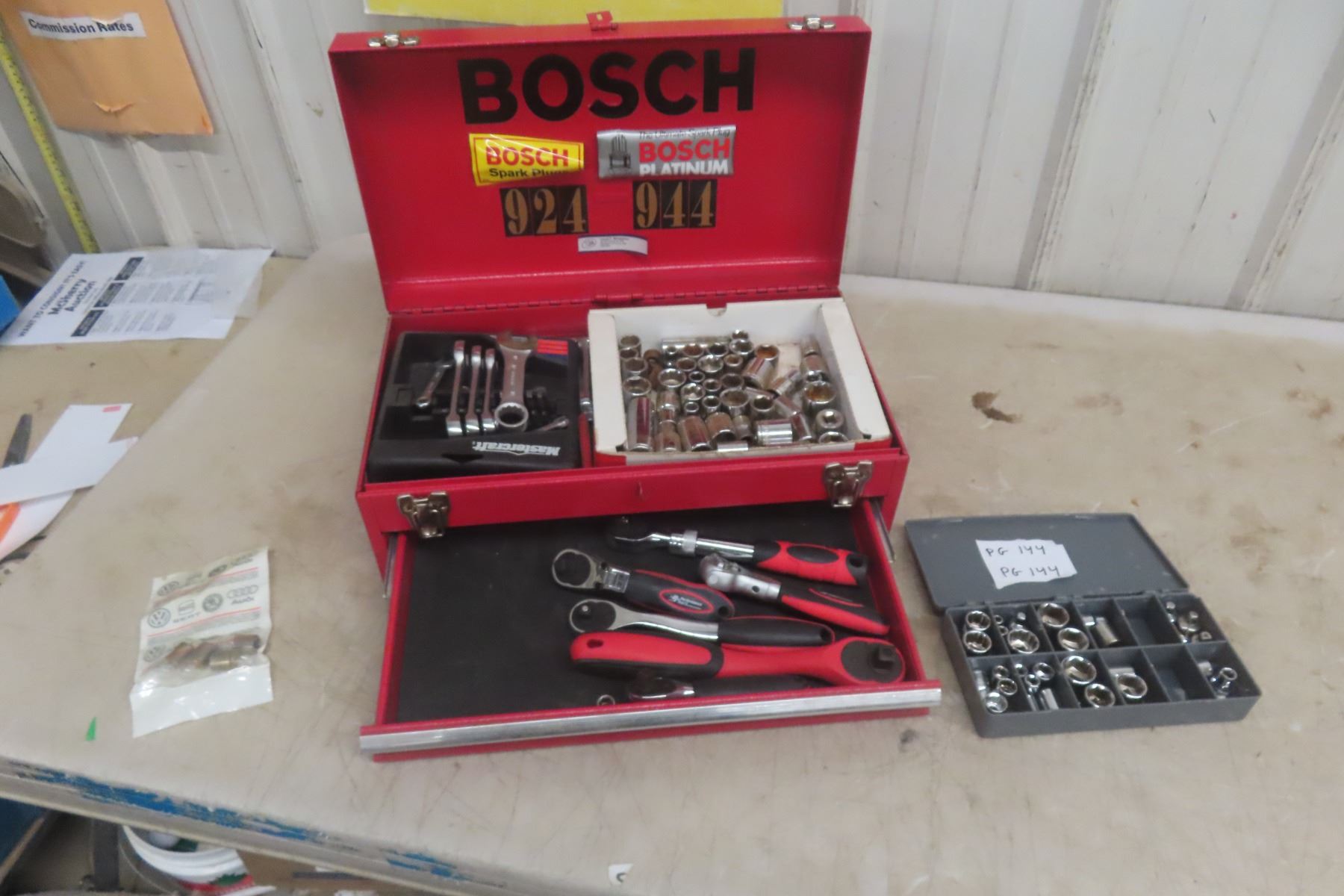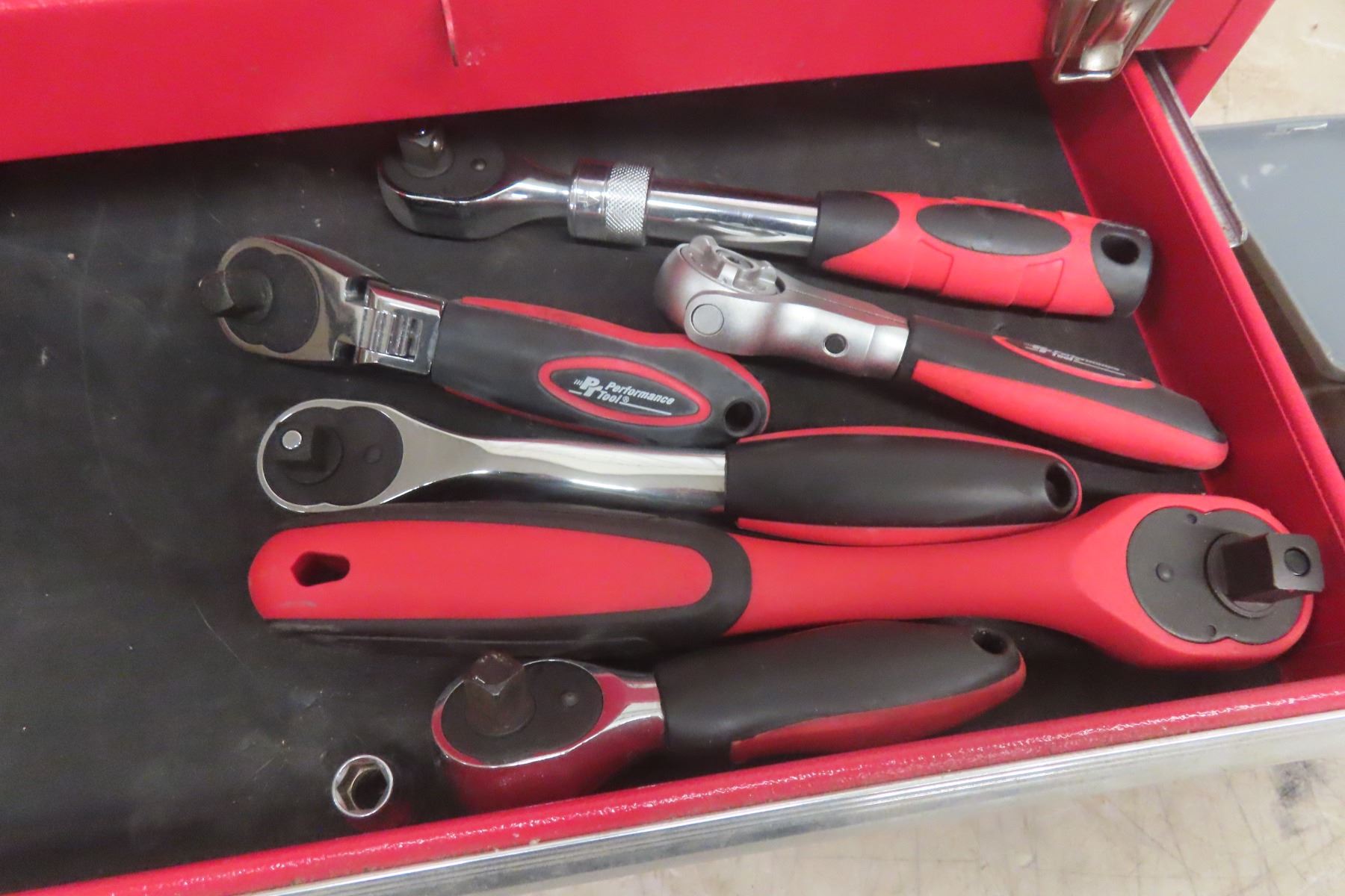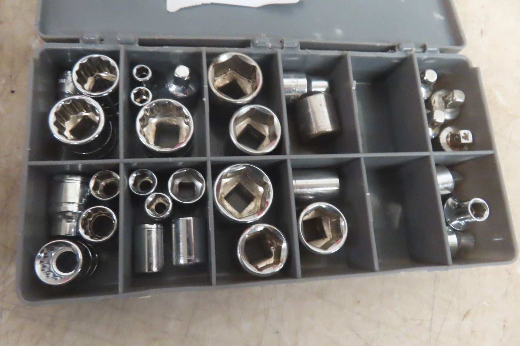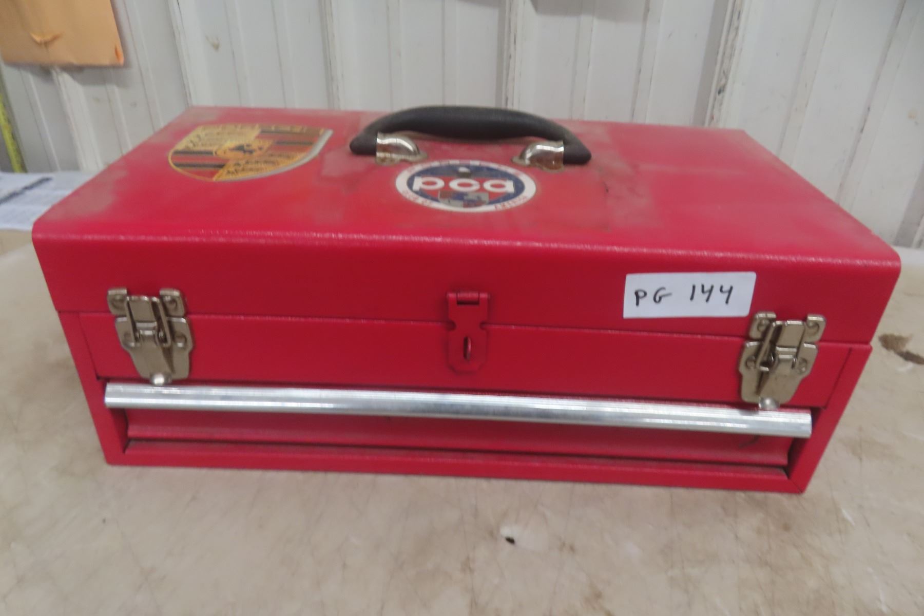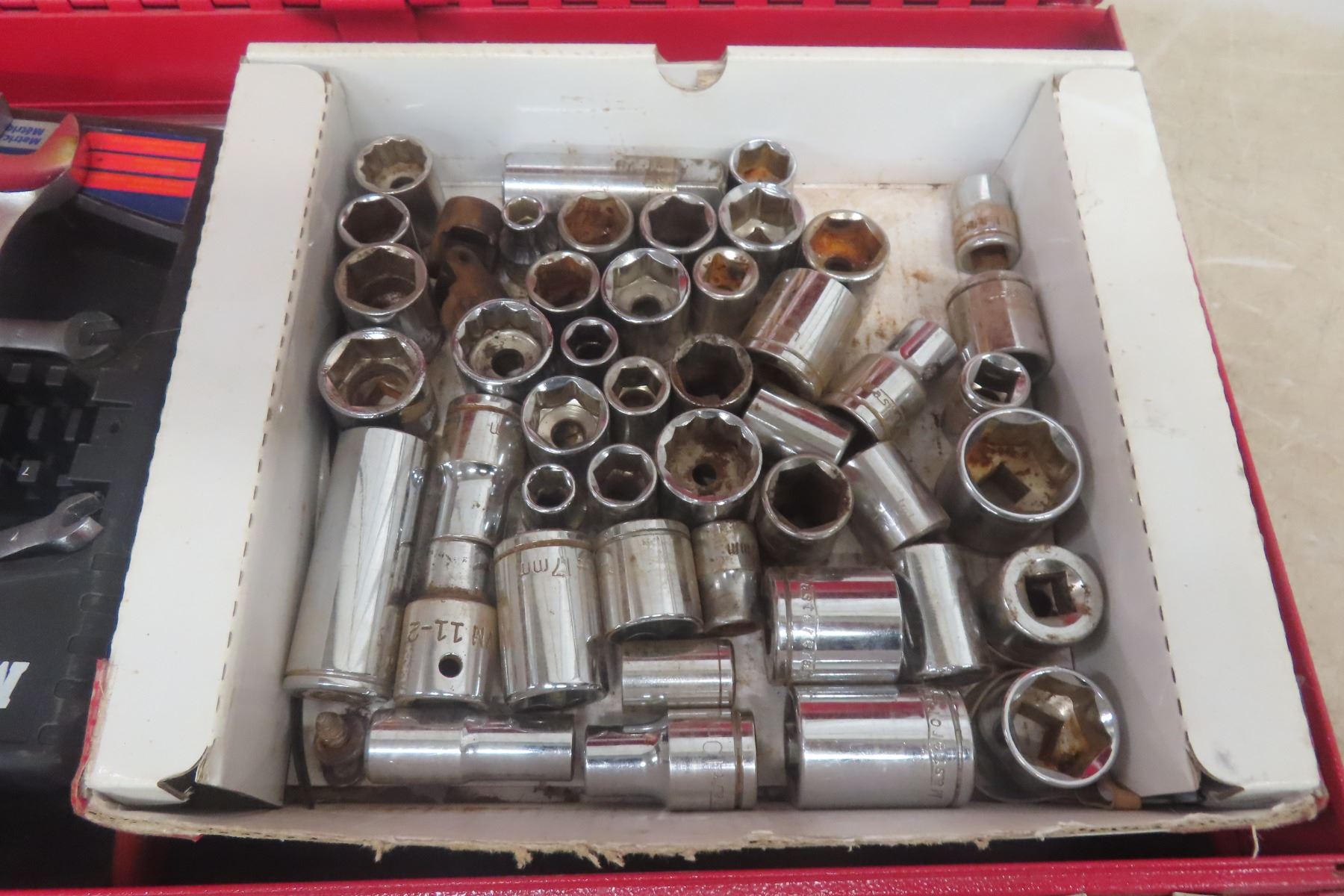 Lot 144 Metal Tool Box with Bottom Drawer, Wrenches, Sockets, Ratchets 3/8'' +