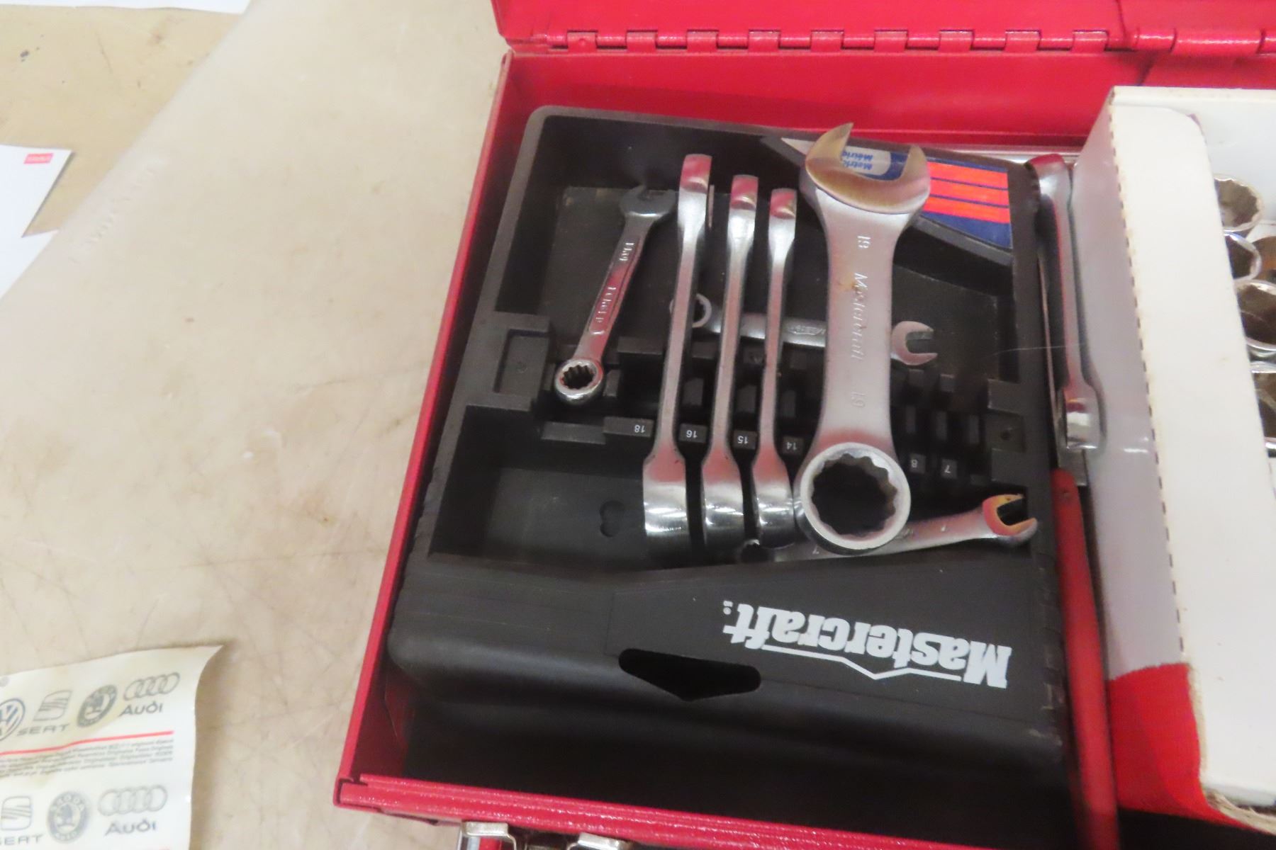 Metal Tool Box with Bottom Drawer, Wrenches, Sockets, Ratchets 3/8'' + 1/2''