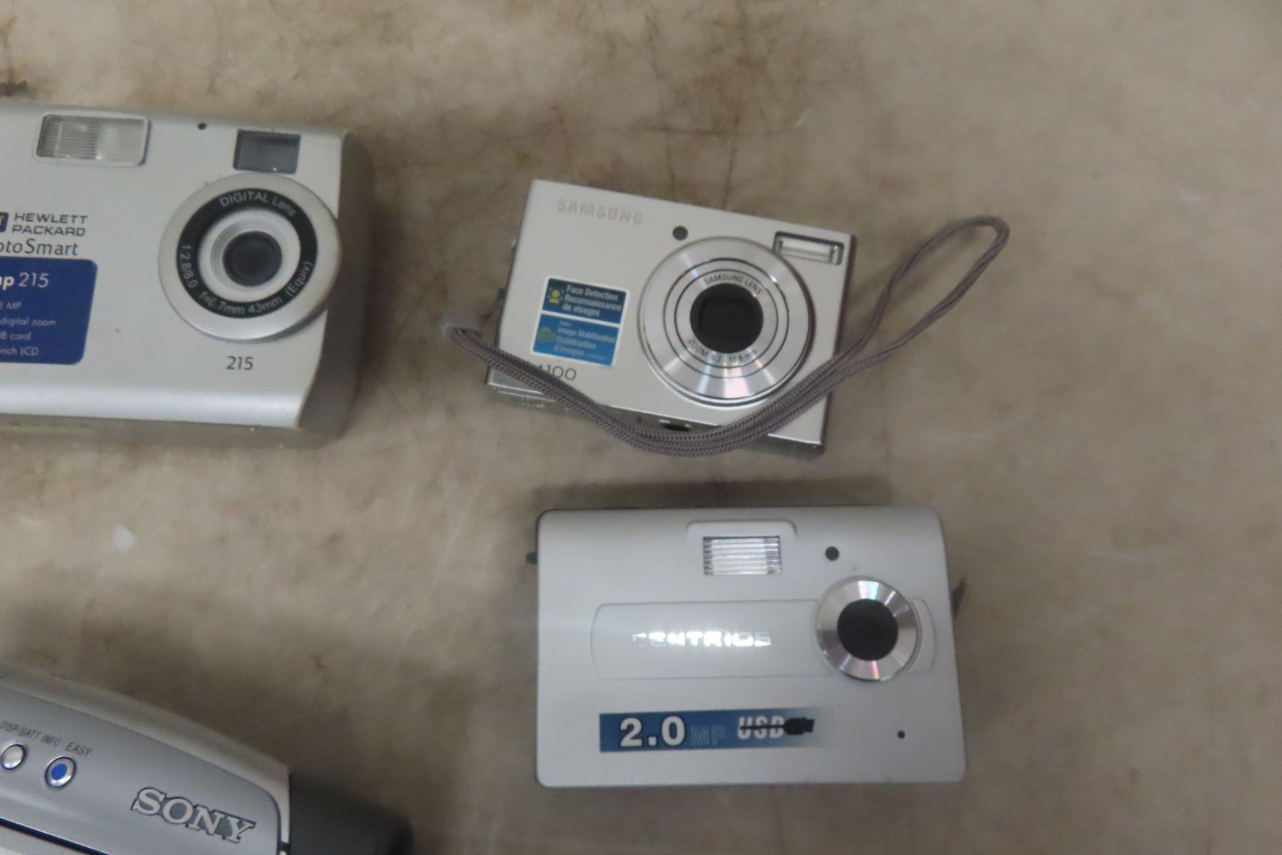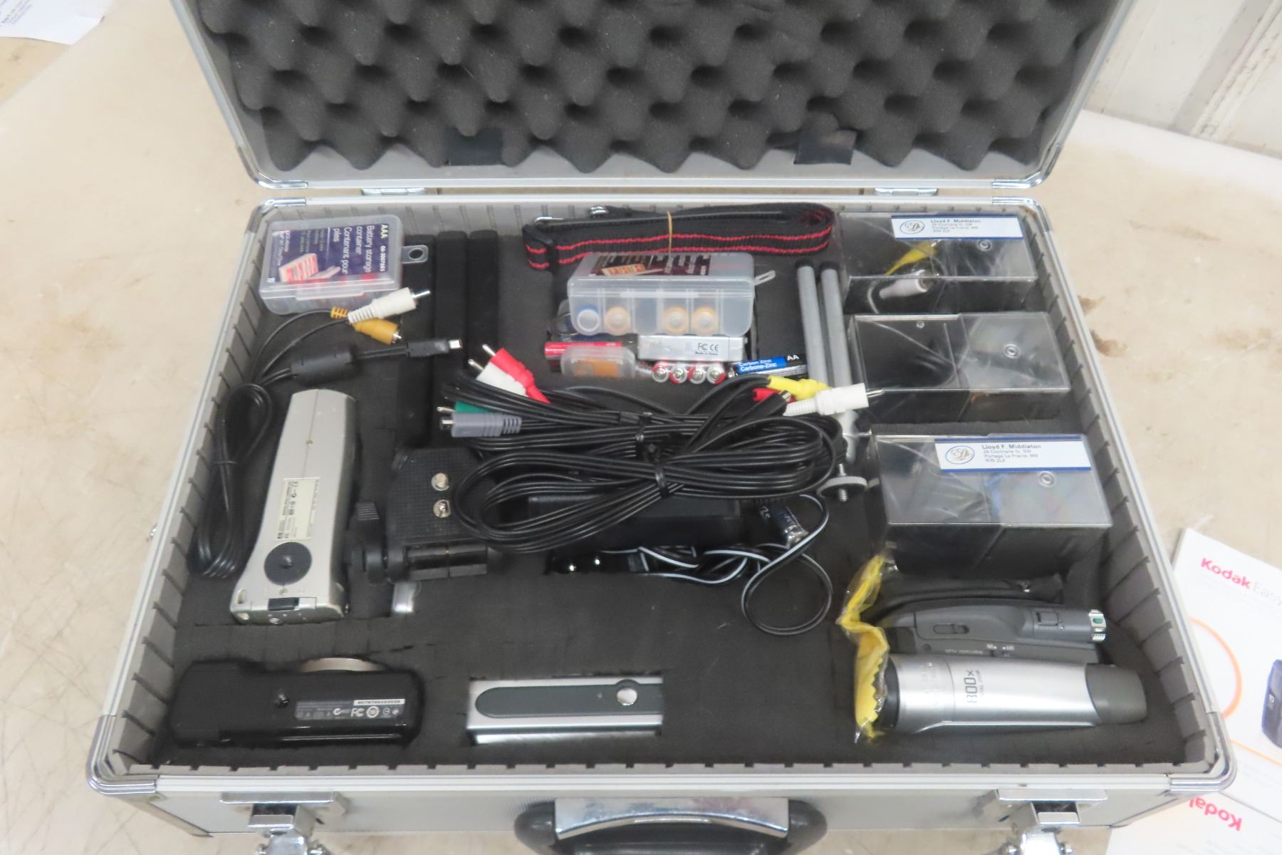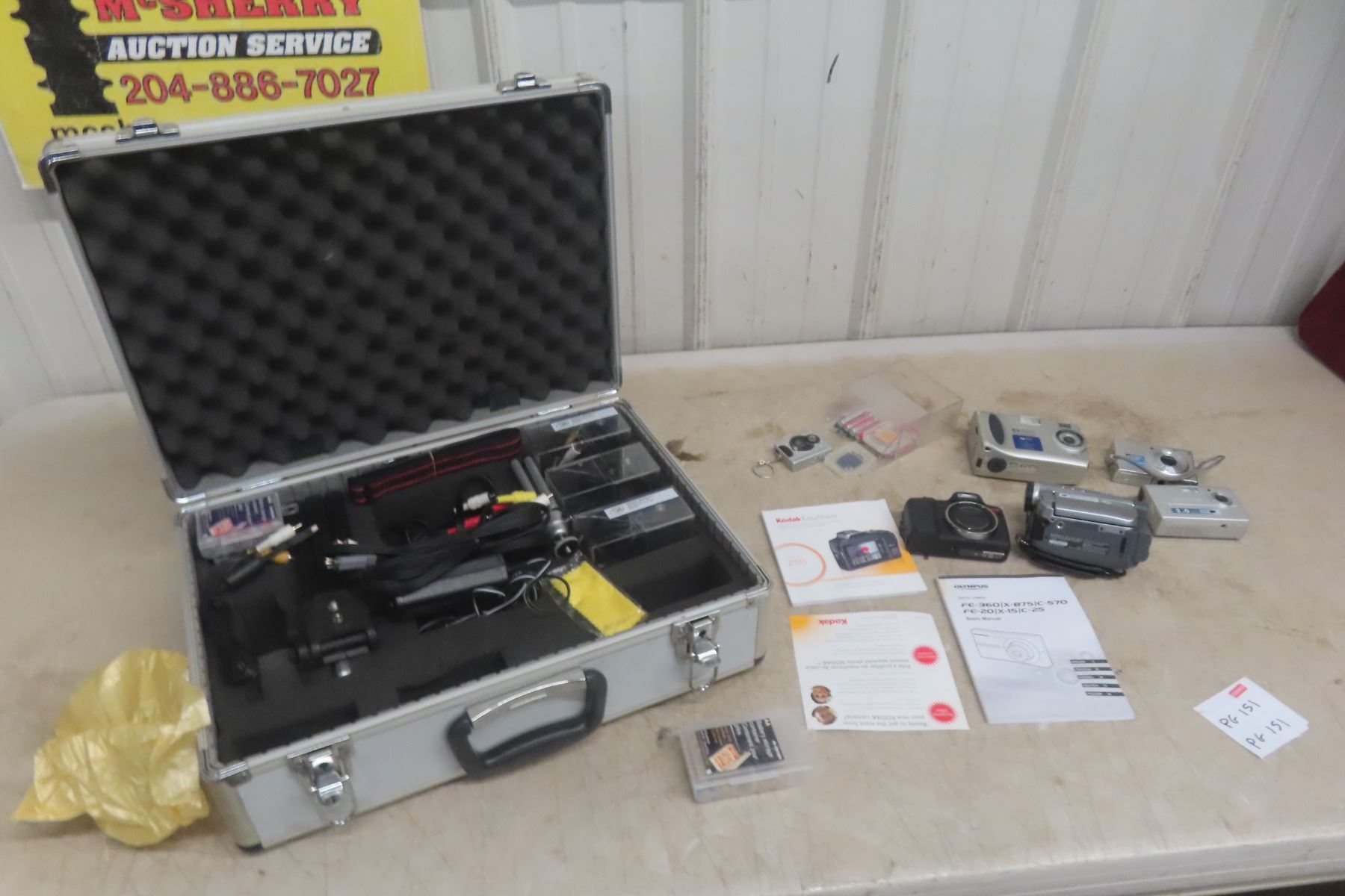 Lot 151 Hard Case with Sony Handy Cam, Various Cameras, Memory Cards, Tripods,