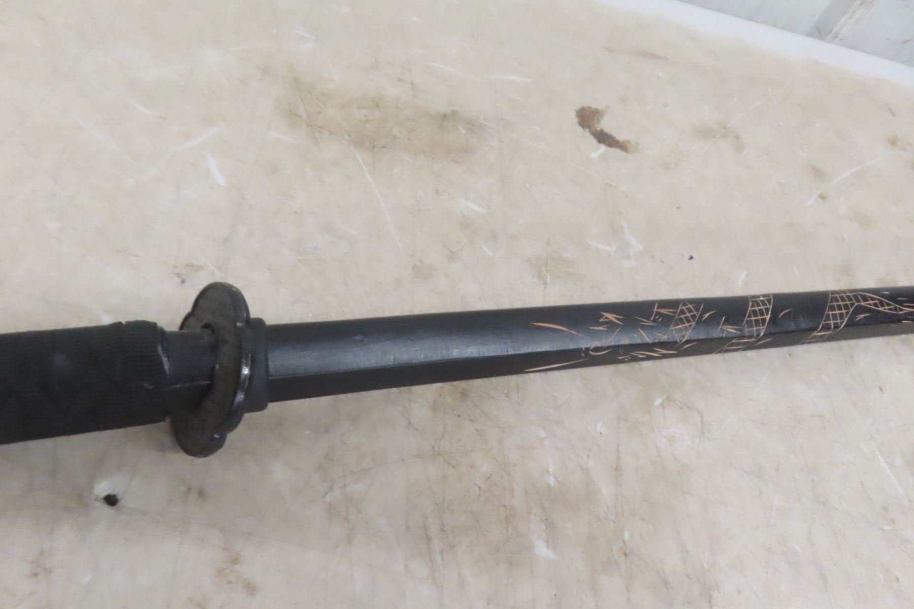 Lot 163 Practice Wooden Sword Oriental Design 39'' Long
